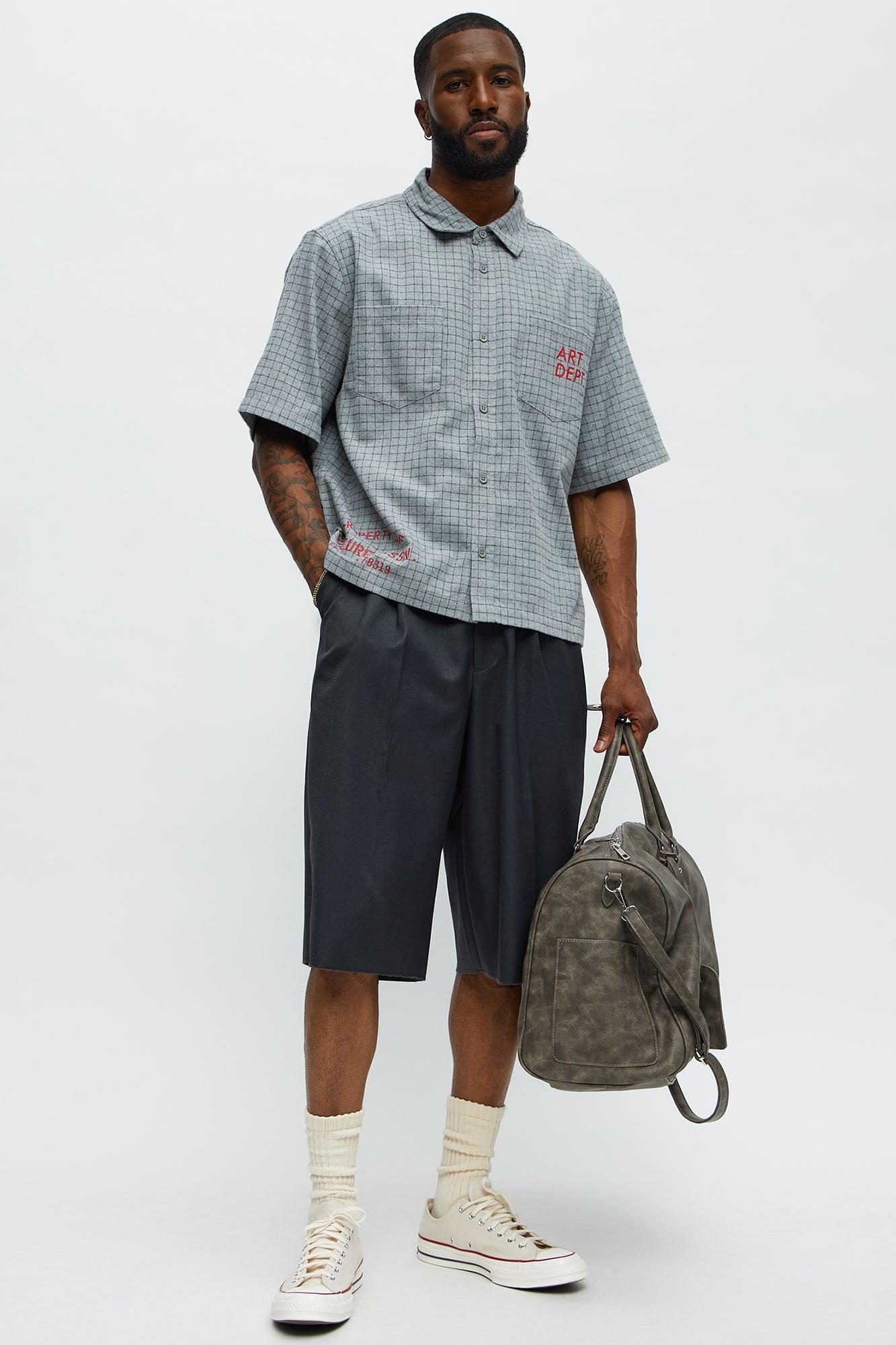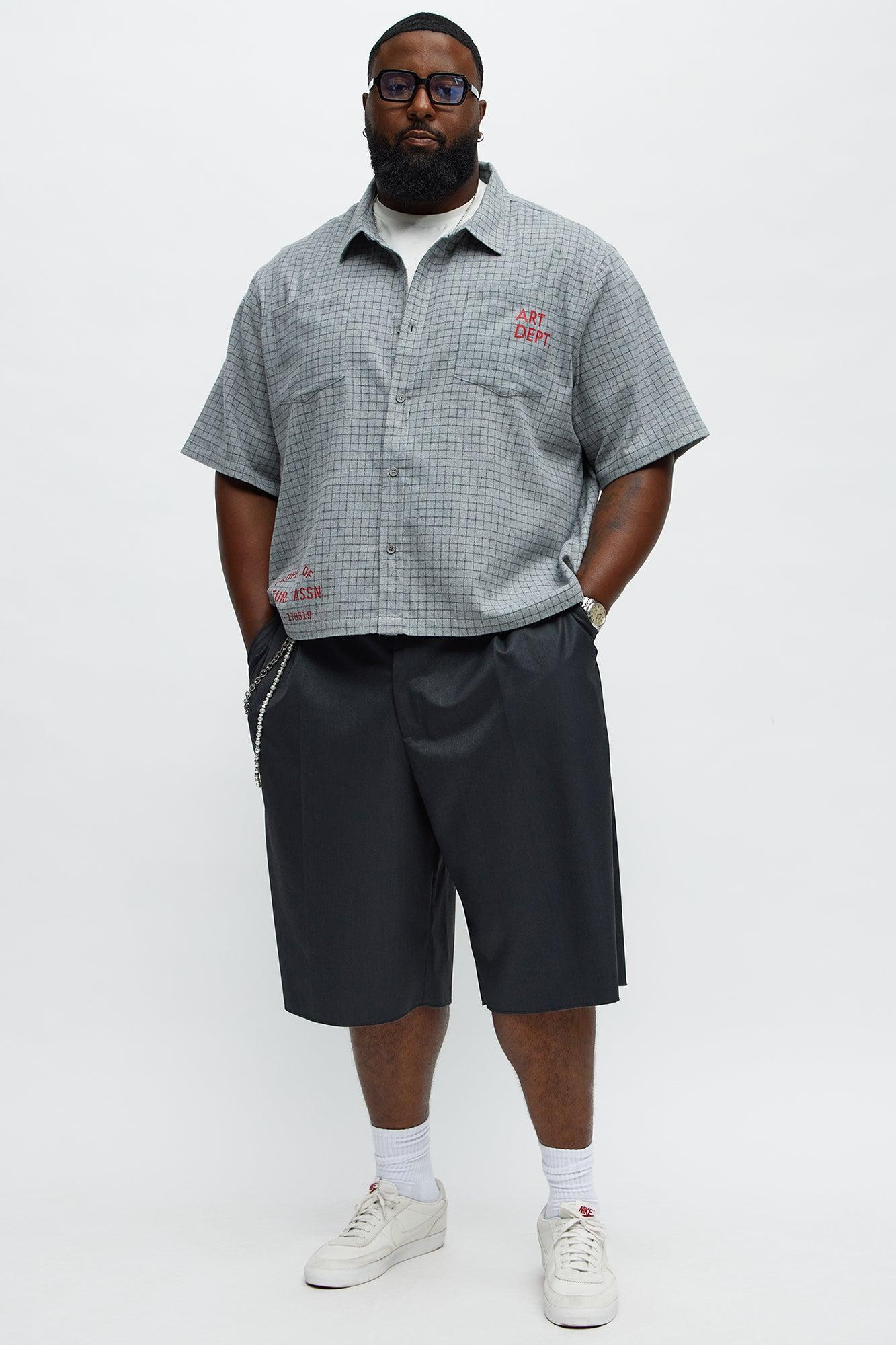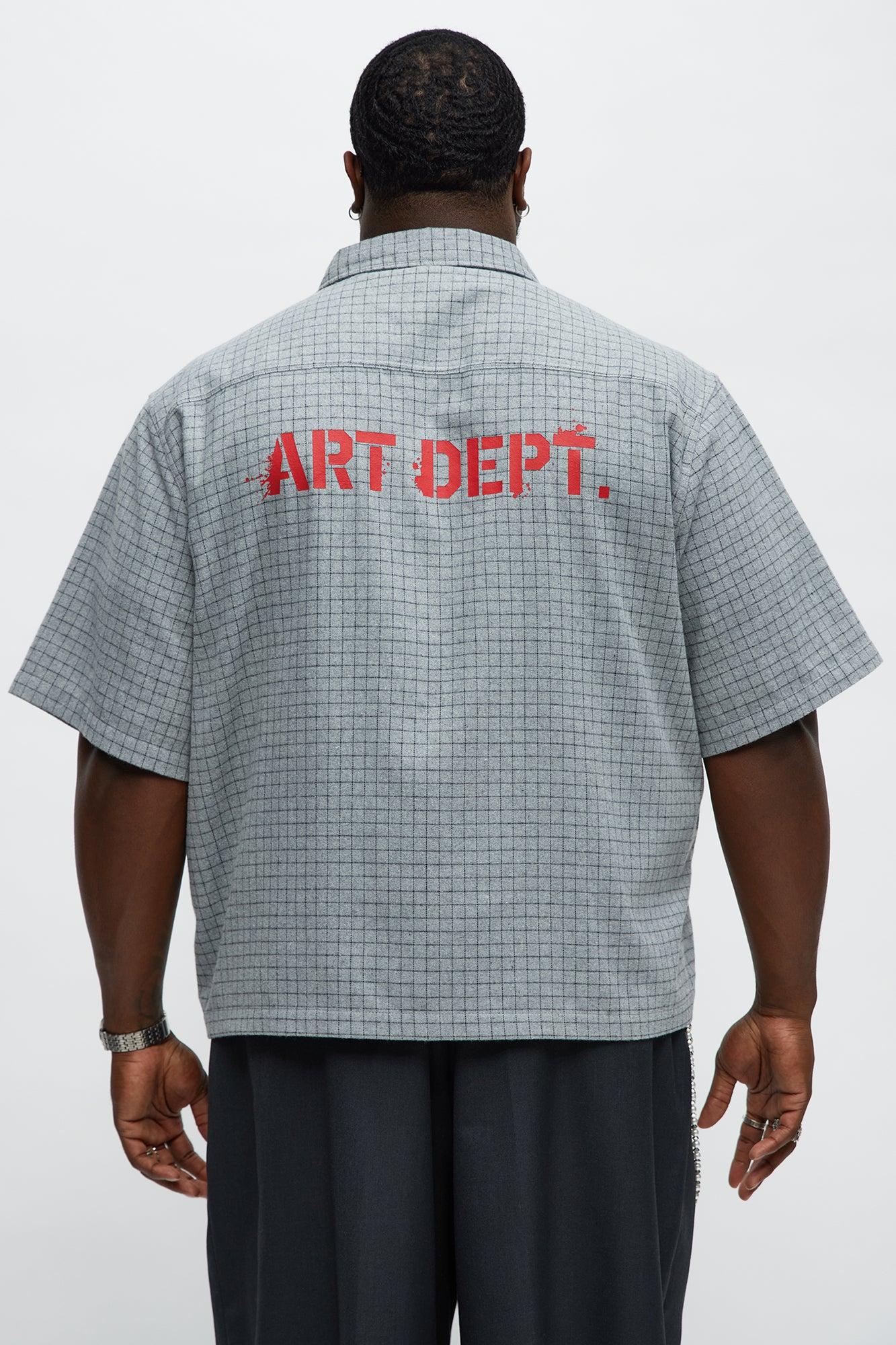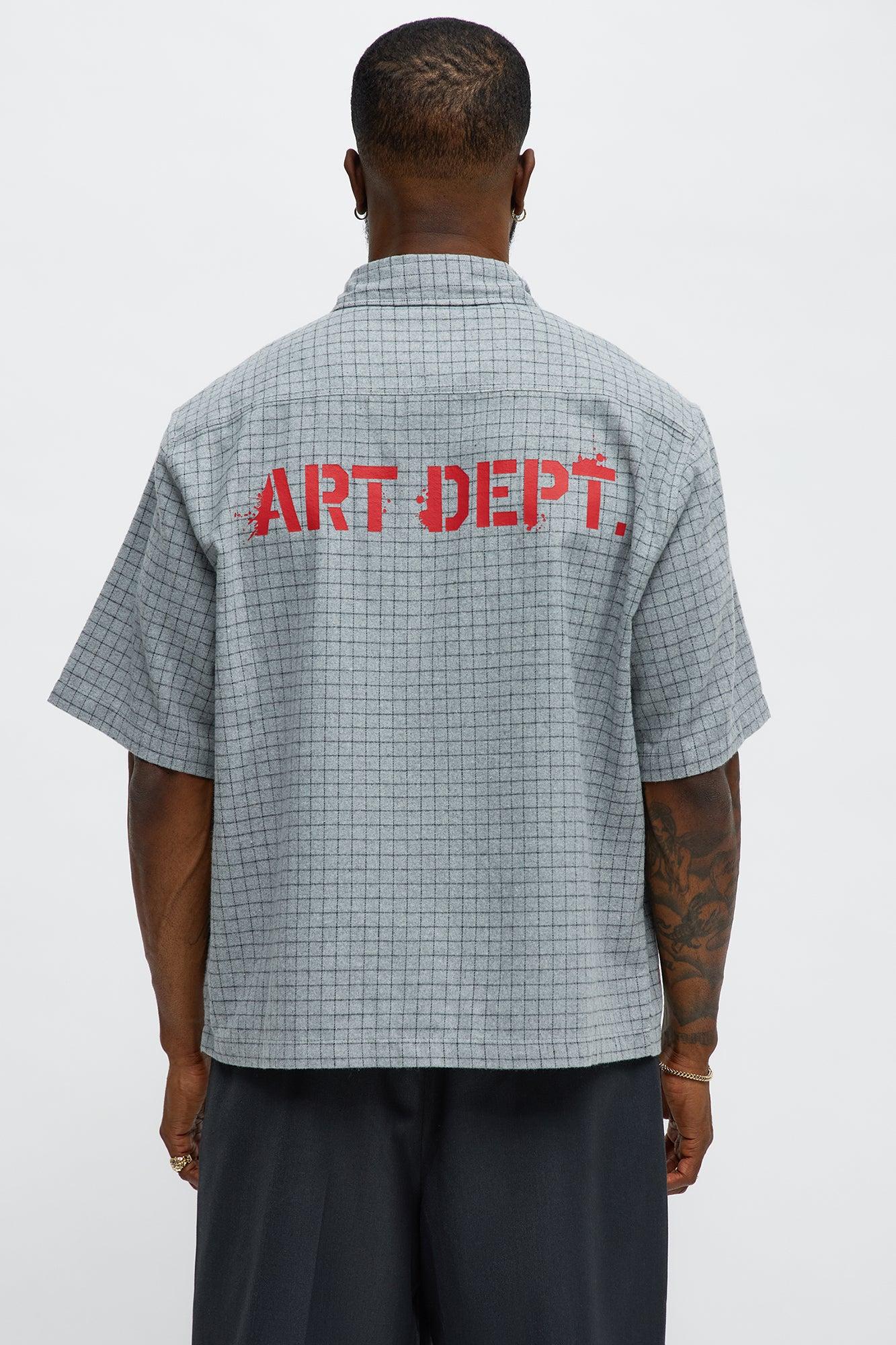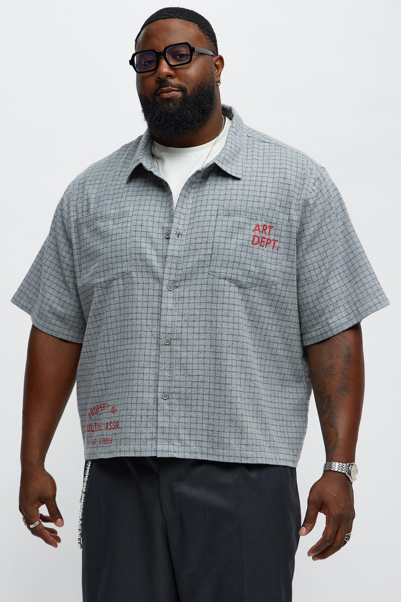 Art Dept. Cropped Button Up Shirt - Grey Male