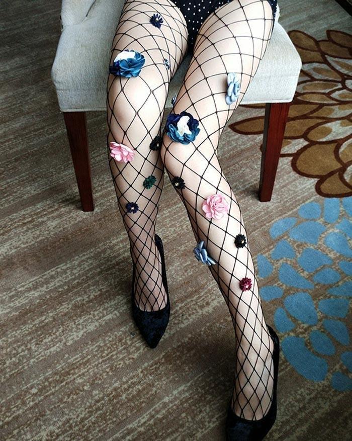 Art Embellished Fishnet Tights