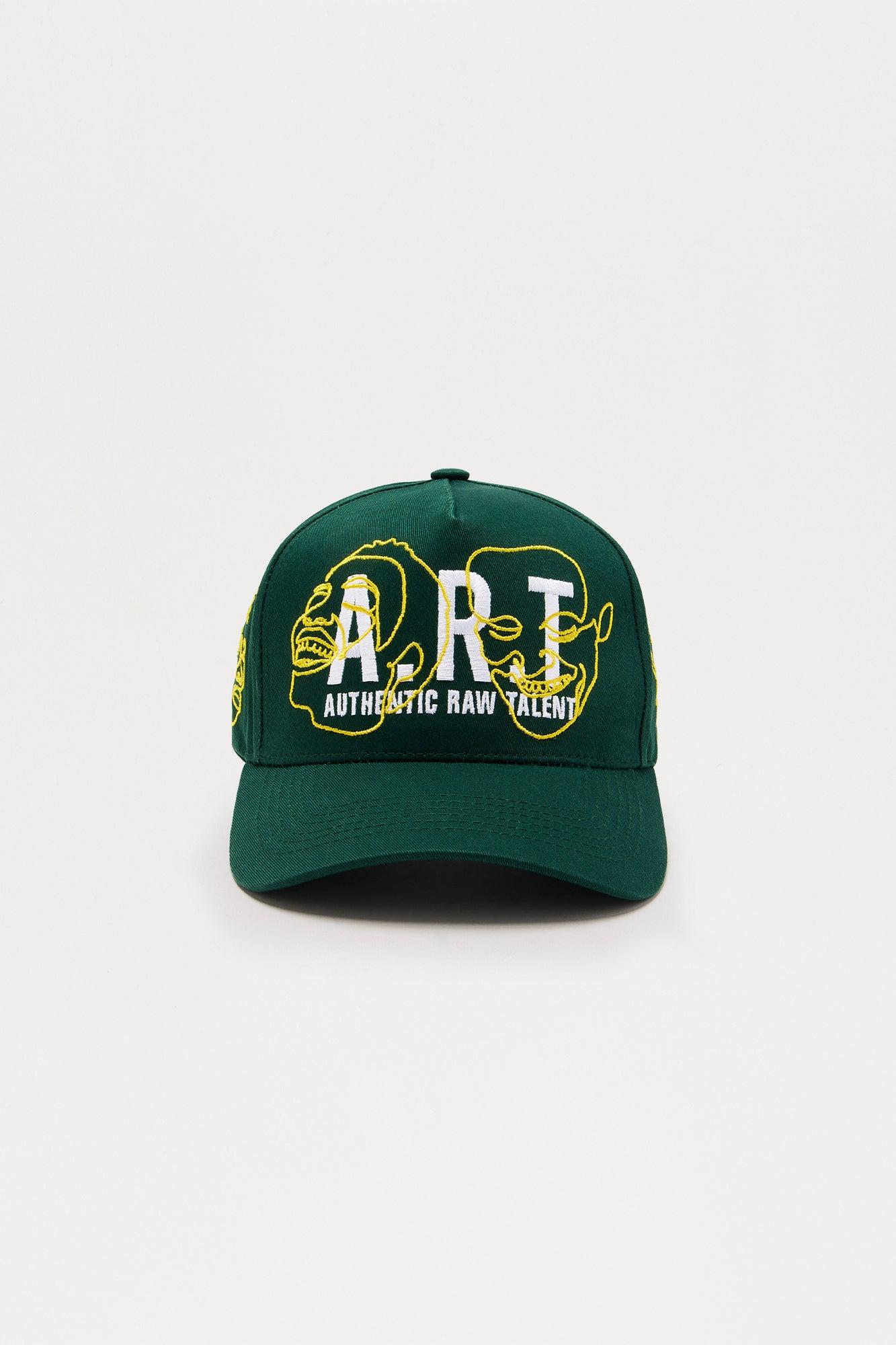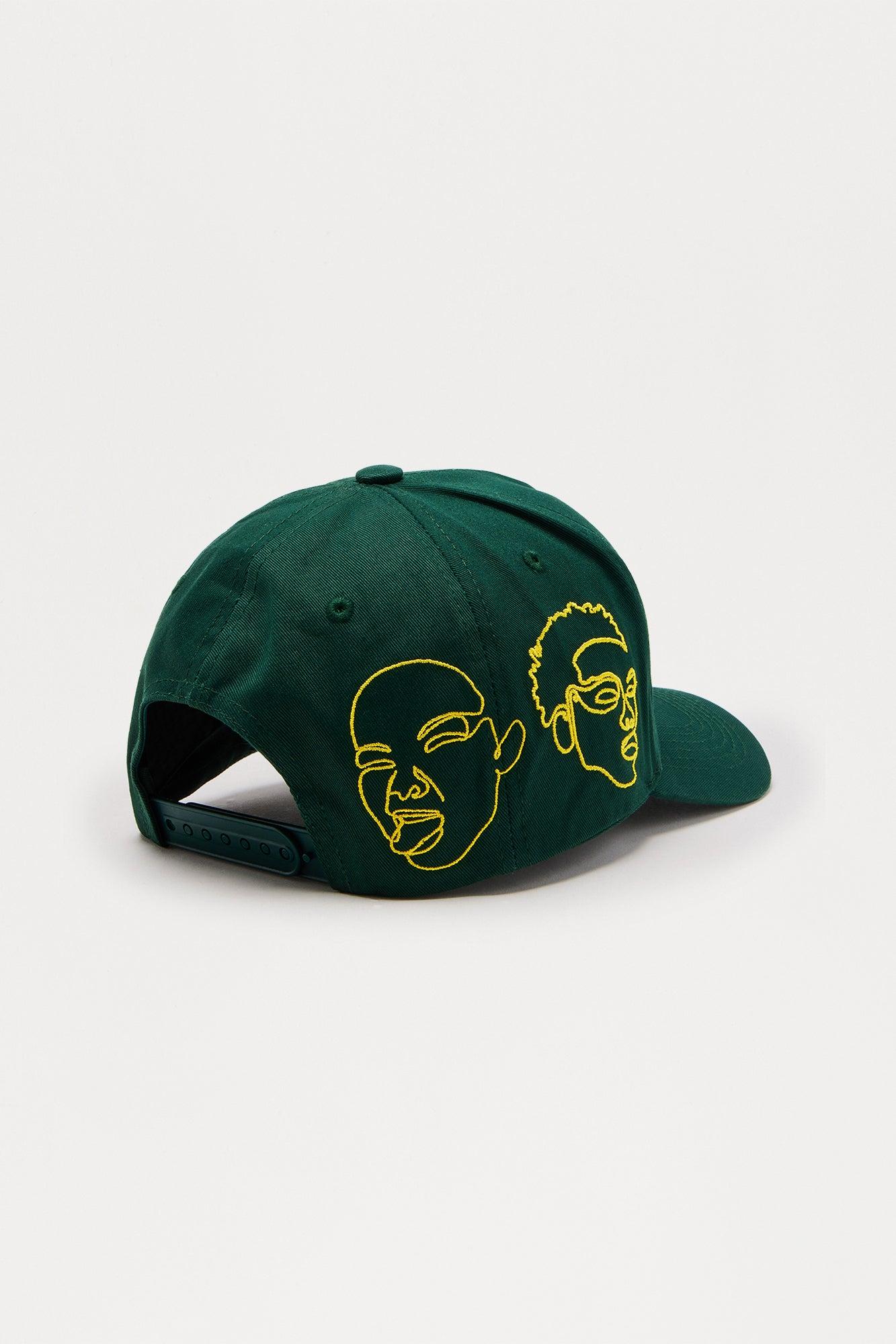 Available In Green And Navy. Embroidery Verbiage Detail Structured Body Curved Brim Adjustable Snapback Closure 100% Cotton Imported California Proposition 65WARNING: Cancer and Reproductive Harm - www.P65Warnings.ca.gov.