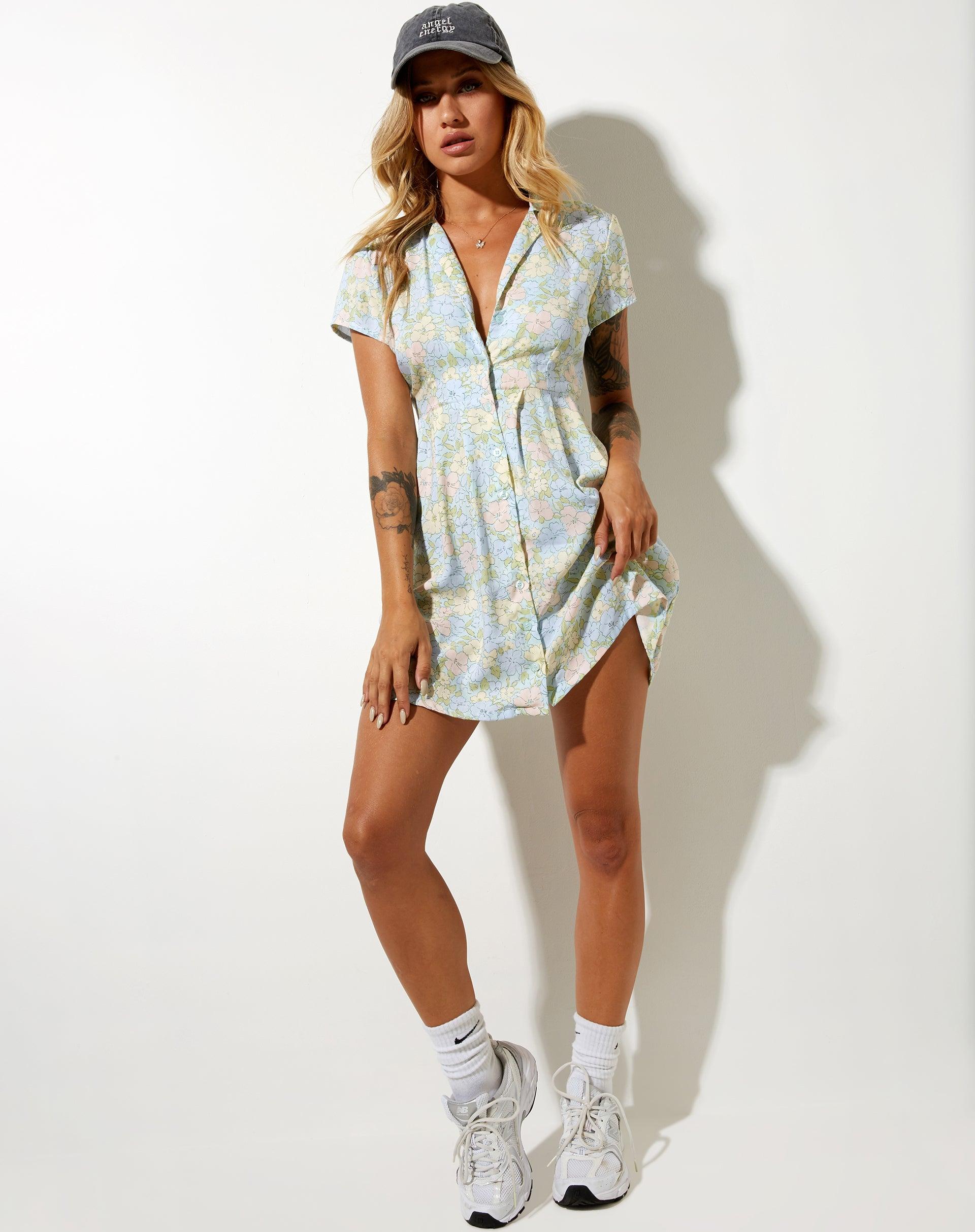 Update your summer wardrobe with our Arte dress. Featuring a mini fit, short sleeves and v neckline in a washed out pastel floral print. Keep it casual with a pair of chunky white trainers. MODEL WEARS:S - MODEL HEIGHT:5'8 - FABRIC CONTENT: 100% VISCOSE