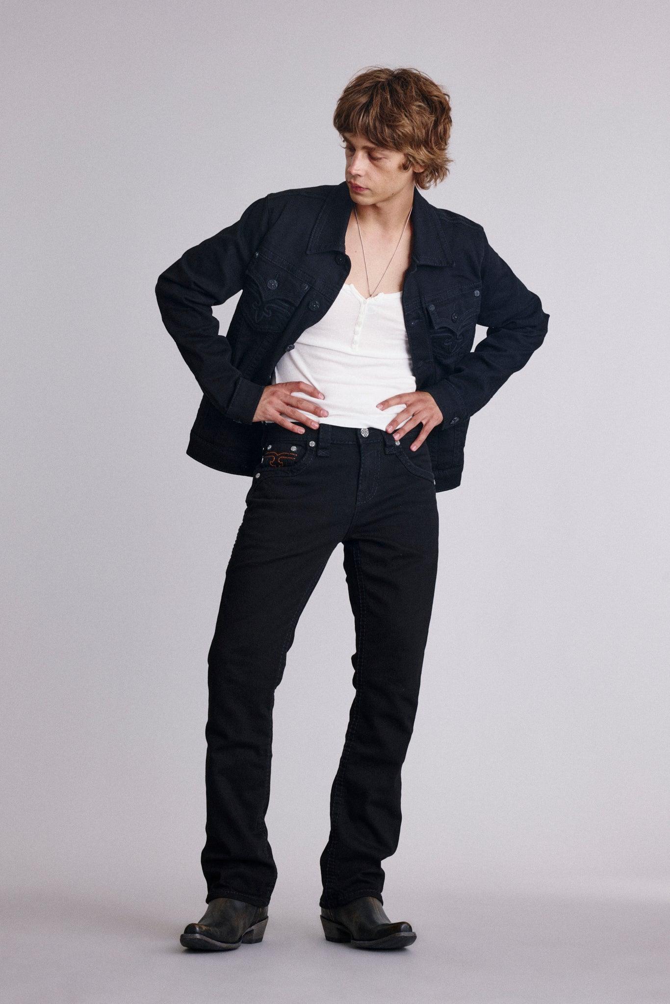 The “Arther” jeans feature our iconic reverse Fleur-de-Lis design, offering a more understated back pocket style that still commands attention and exudes timeless. Black matte hardware throughout. Signature reverse Fleur de Lis on front pockets. Black leather decoration on the Fleur de Lis logo. Designed with care and creativity in Los Angeles, California.