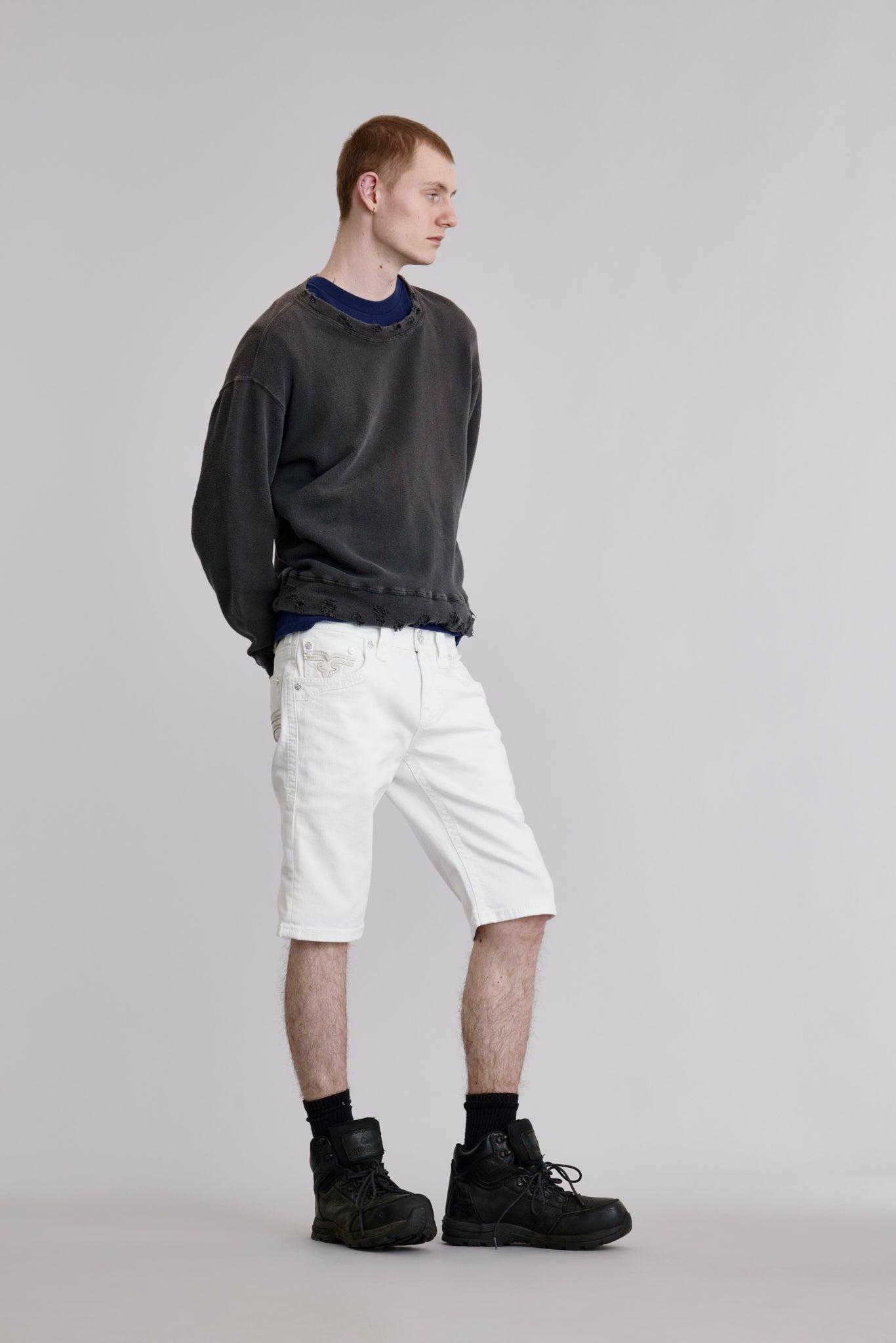 The “Arther” jeans feature our iconic reverse Fleur-de-Lis design, offering a more understated back pocket style that still commands attention and exudes timeless appeal Custom silver hardware throughout. Clean design with white leather and stitching embellishments. Signature reverse Fleur de Lis design on back pockets. Designed with care and creativity in Los Angeles, California.
