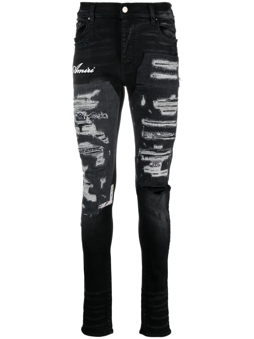 Artisanal distressed slim-fit jeans