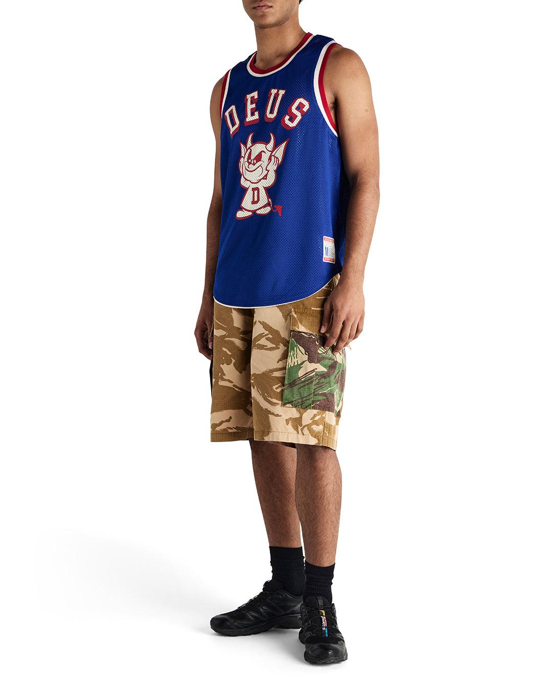 Relaxed Fir Military Style Cargo Short With All Over Printed Yardage Art, Front Slash, Side Cargo And Back Flap Pockets, Corozo Nut Button Closure At Waist, Zip Fly, Side Adjusters At Waist, In A Cotton Rip Stop Fabrication With A Heavy Enzyme Stone Wash