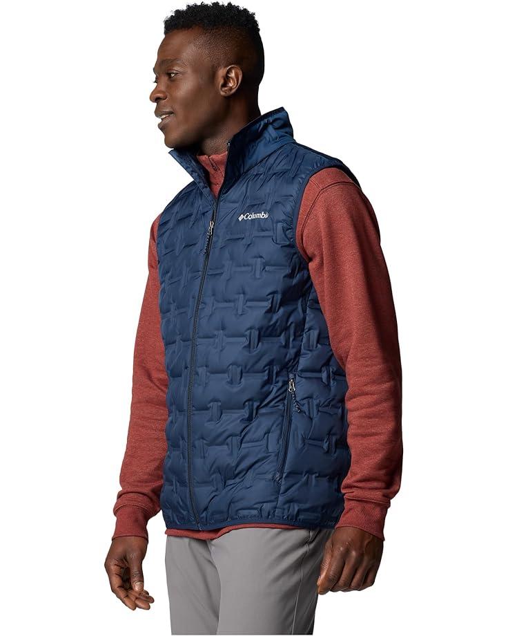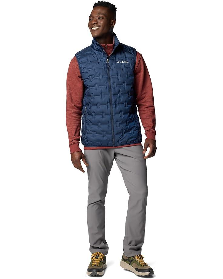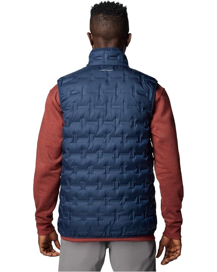 The Columbia® Delta Ridge™ II Down Vest: Lightweight, warm, and ready to conquer anything. Embrace unbeatable warmth and style with this regular fit, sleeveless essential, designed to keep you cozy in any condition. Featuring Omni-Heat™ thermal reflective technology and 650 fill power down insulation, it delivers superior heat retention and comfort. Heat Seal Construction ensures durability, while Omni-Shield™ advanced repellency keeps you dry and protected. The water-resistant fabric and RDS certified down enhance your outdoor experience. With a zippered front closure, chin guard, and convenient zippered hand pockets, this vest is your perfect companion for exploring in style and staying warm.