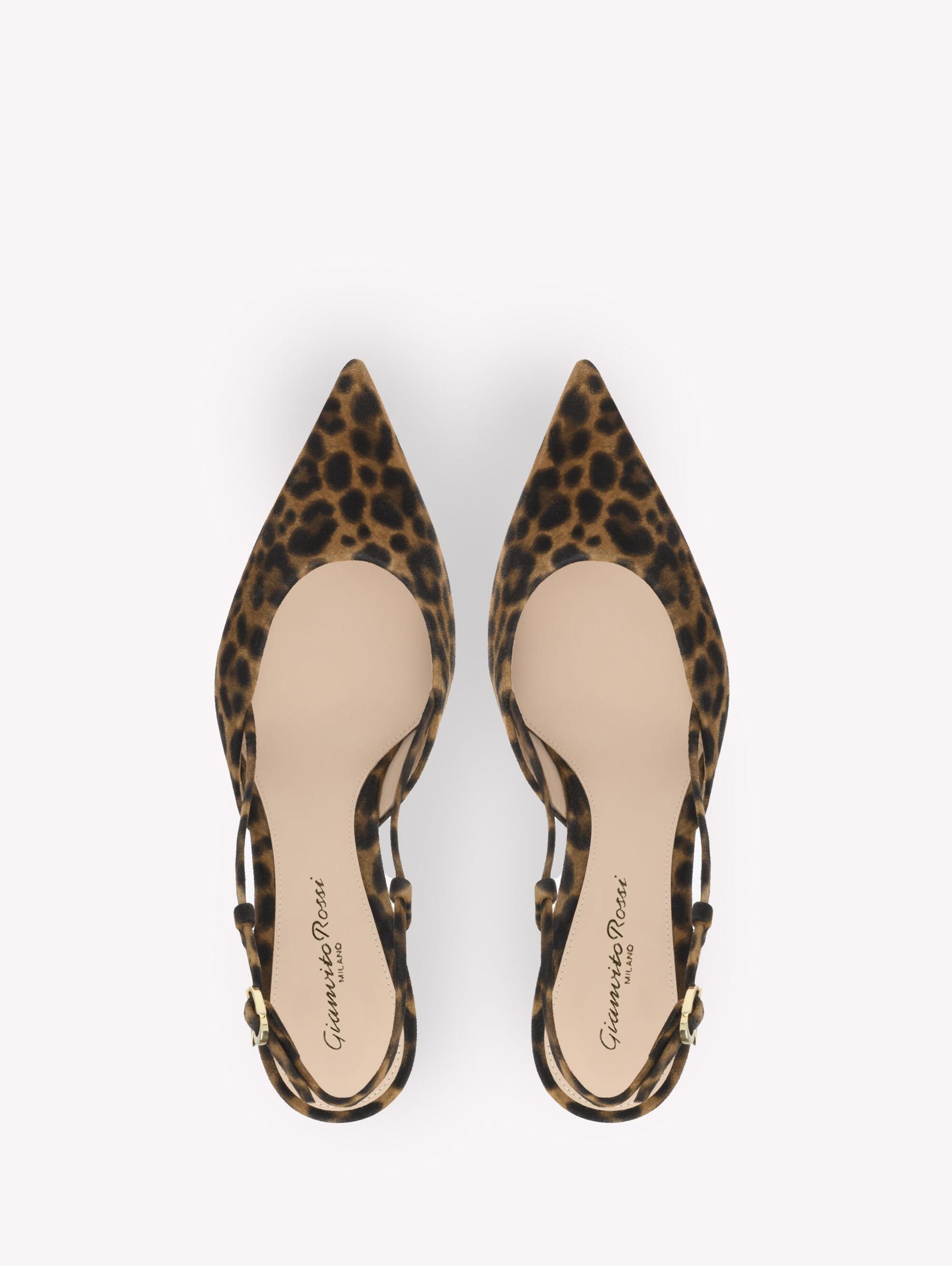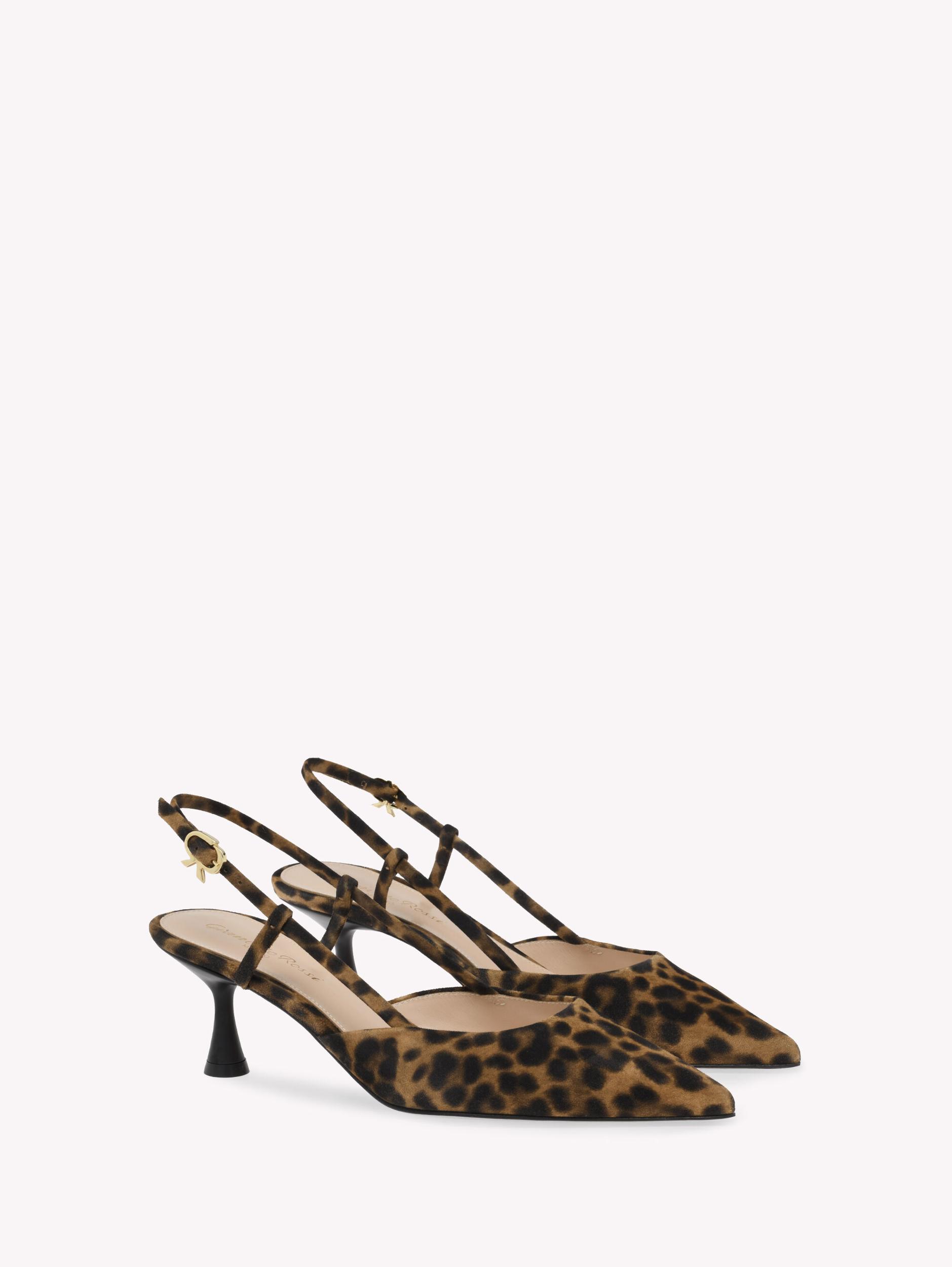 Crafted from supple suede, Ascent 55 is a pointed-toe slingback with a 55mm flare kitten heel. The precious metallic Ribbon buckle, signature of the brand, elegantly enriches the ankle strap. Handmade in Italy.