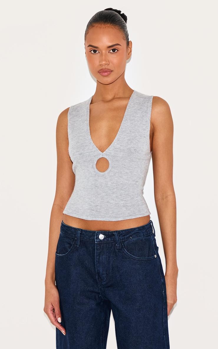 Elevate your everyday basics with this ash grey soft knit plunge detail crop top. Made from an ash grey soft knit material with a plunging neckline and a cropped fit. Style this crop top with jeans, court heels and a bag for a look that is perfect for day to night styling.Length approx 48.5cm/19inch (Based on sample size S)Model wears size SModel Height - 5ft 9inchp]:!mb-4inch>Brand: PrettyLittleThingCategory: KnitwearProduct type: Vest TopColor: Ash GreyMaterial: KnitNeckline: PlungeSleeves: ShortOccasion: Day