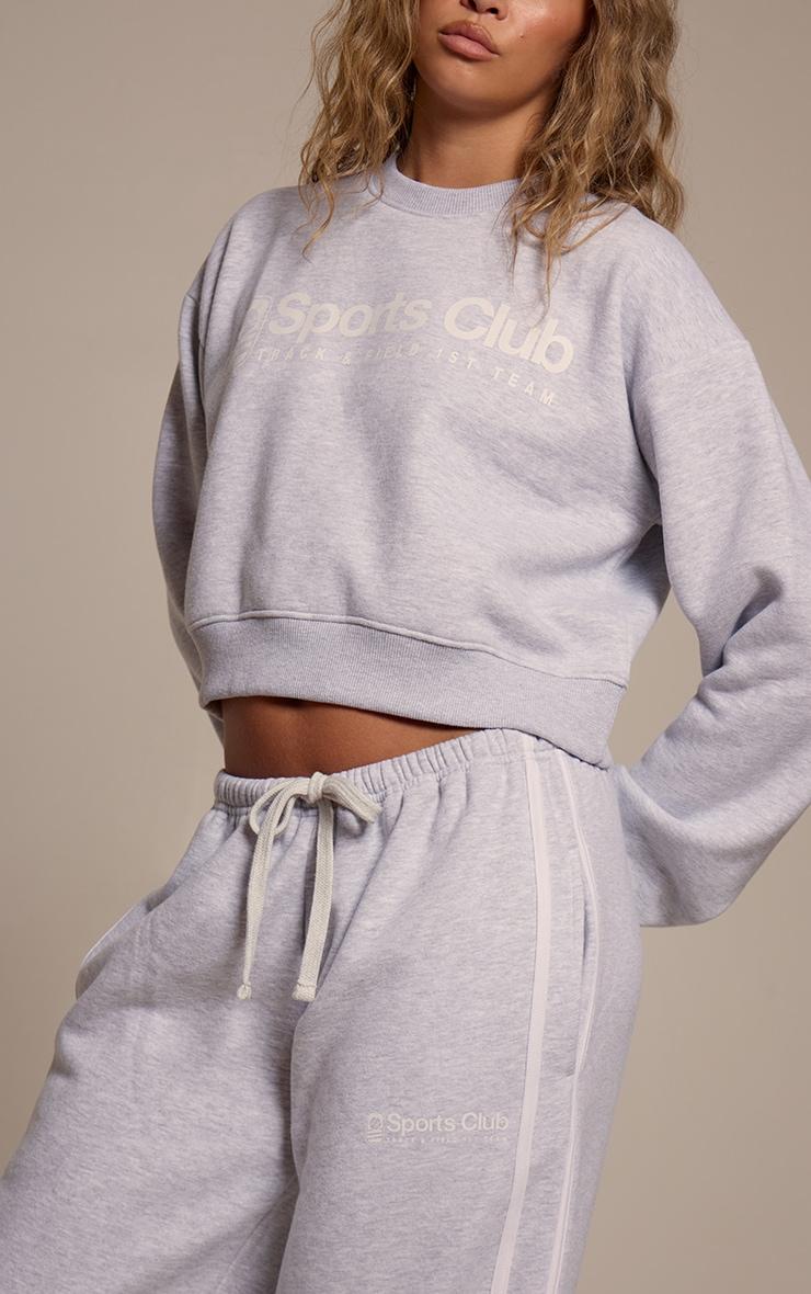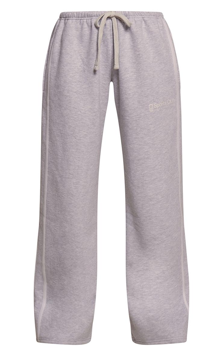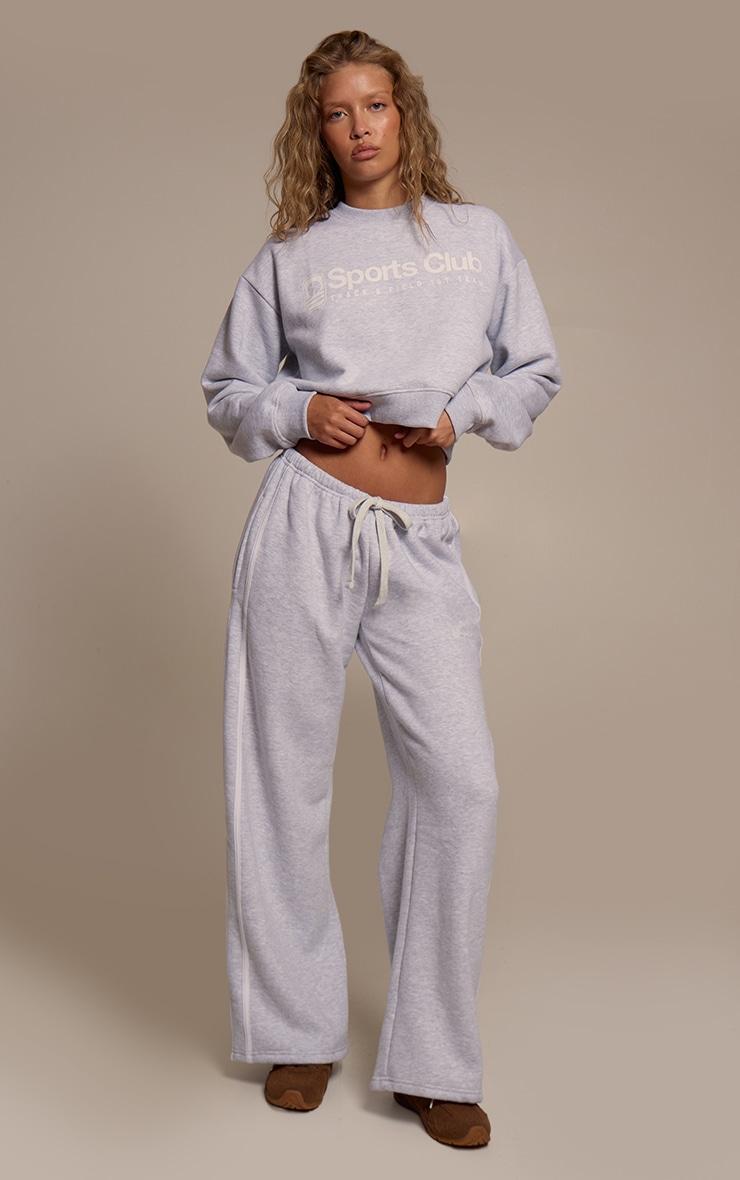 Master off-duty style with ease. Perfect for your relaxed wardrobe rotation, these ash grey sports club print wide leg sweatpants are designed for a comfortable yet polished look. Featuring a versatile drawstring waist and a contemporary wide-leg cut, they’re subtly detailed with a clean side stripe and the distinct 'Sports Club' print, ensuring your comfort game is always elevated. Pair them with a cropped sweater for a co-ordinated vibe, or a simple tee for a more understated feel. Complete the look with chunky boots for an effortless edge, and finish with a sleek black bag for a refined street-style statement.Length approx 76cm/30inch (Based on sample size S)Model wears size SModel Height - 5ft 10inchp]:!mb-4inch>Brand: PrettyLittleThingCategory: AthleisureProduct type: Wide Leg JoggersColor: Ash GreyMaterial: Fleeceback SweatOccasion: Day
