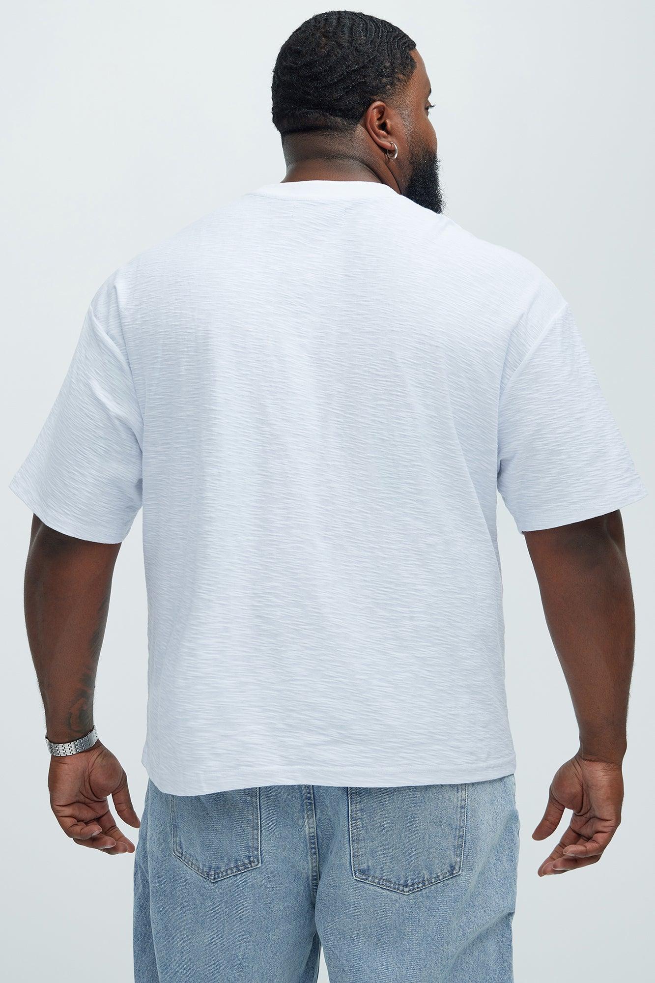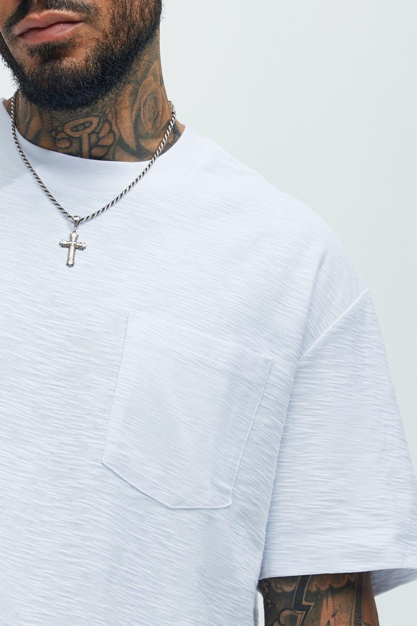 Available In White, Olive and Black Crew Neck Chest Pocket Short Sleeve 100% Cotton Imported California Proposition 65 WARNING: Cancer and Reproductive Harm - www.P65Warnings.ca.gov.
