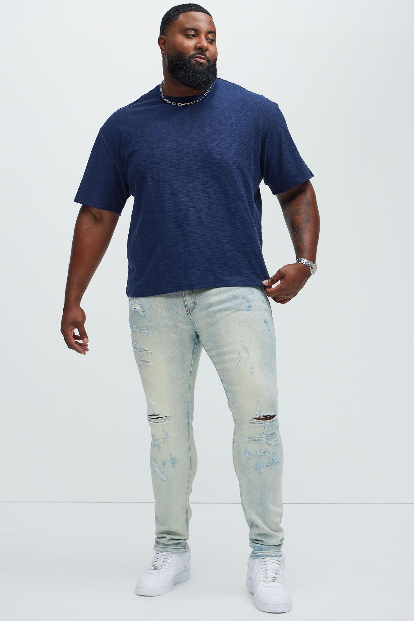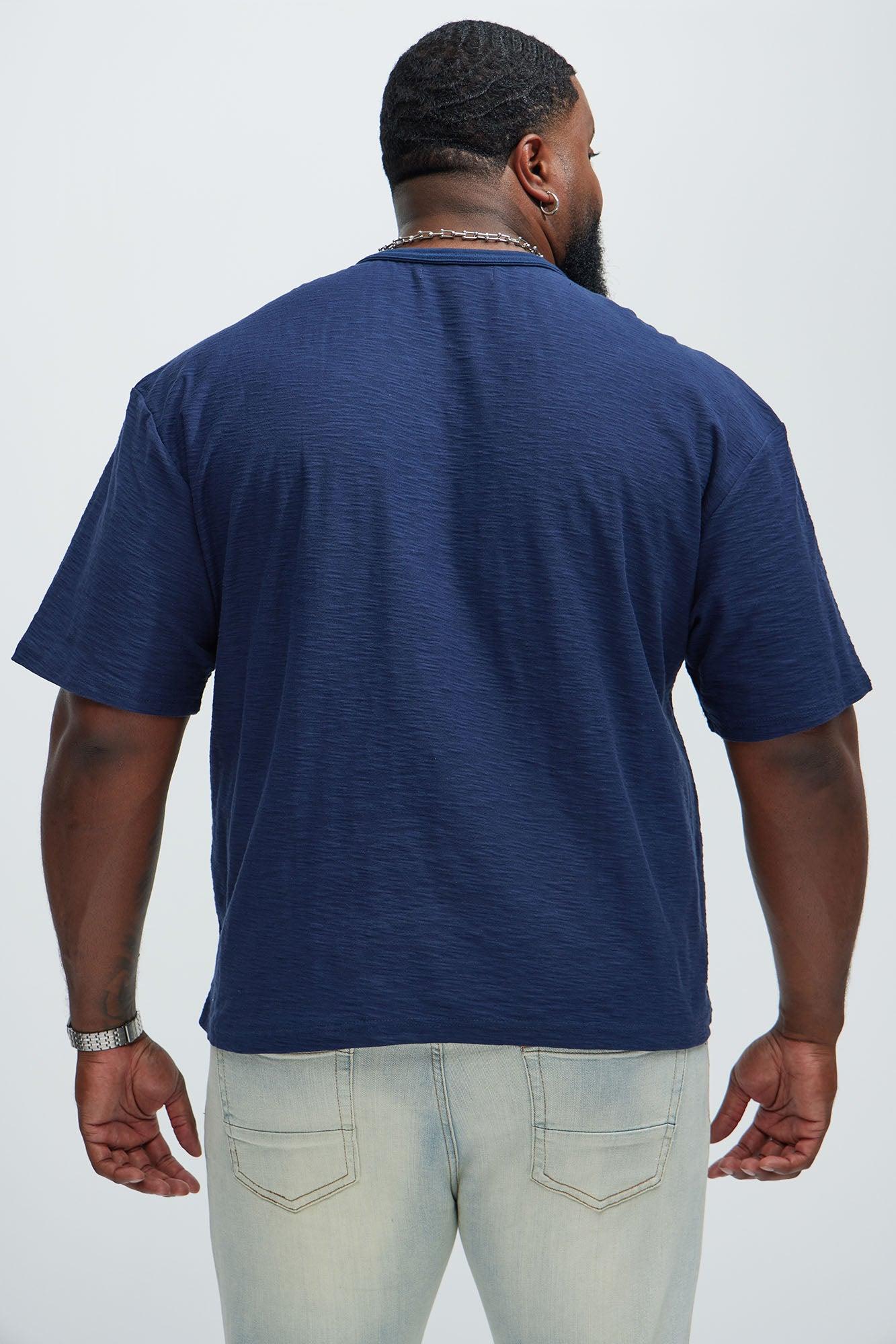 Available In Navy, Black, Grey and Oatmeal Crew Neck Short Sleeve 100% Cotton Imported California Proposition 65 WARNING: Cancer and Reproductive Harm - www.P65Warnings.ca.gov.