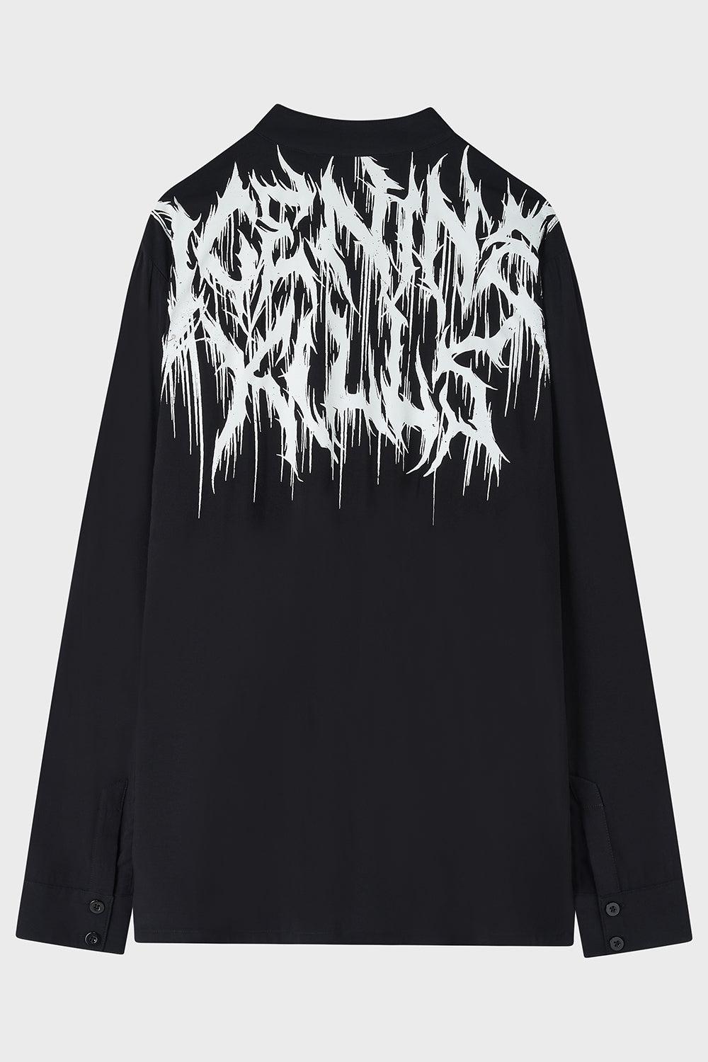 ASHES TO ASHES- Official ICE NINE KILLS licensed product.- Soft feel, viscose shirting fabric.- Unique tunic style shirt.- Statement ICE NINE KILLS limited edition print.- Button fastening.- Long sleeves with cuff and button fastening.- Designed in Brighton, England.Model is 6'1 and wears a size L.With KILLSTAR branding, 100% Viscose.Machine wash cold (30°c) / Do not bleach / Do not tumble dry / Iron at low temperature / Do not dry clean. Imported.