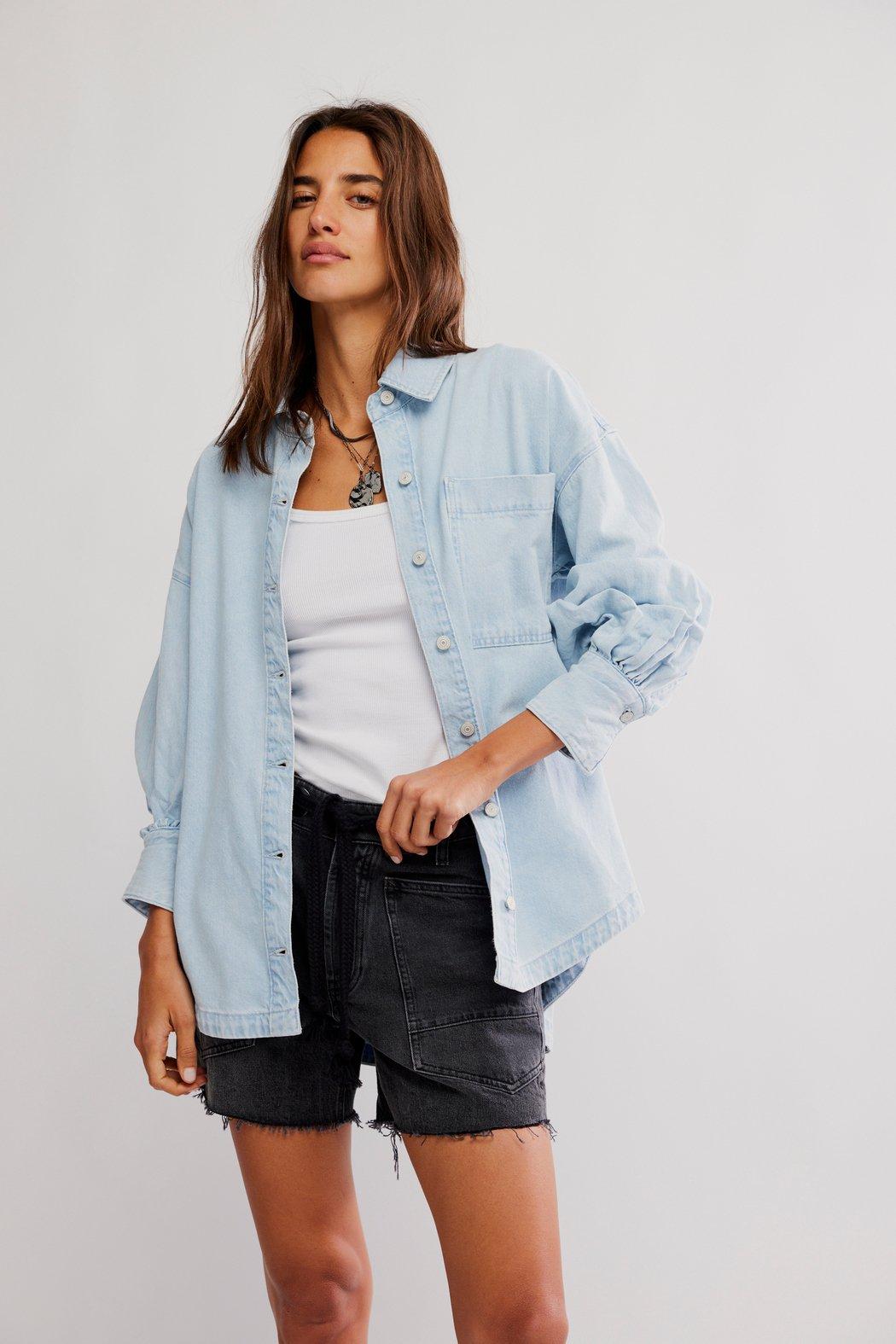 Go classic in this oversized button-down shirt, perfect for leggings or cutoffs. This simple silhouette features an oversized fit making it great for travel or a laid back look. Stick with true size for a dress vibe or size down for a more tailored look.