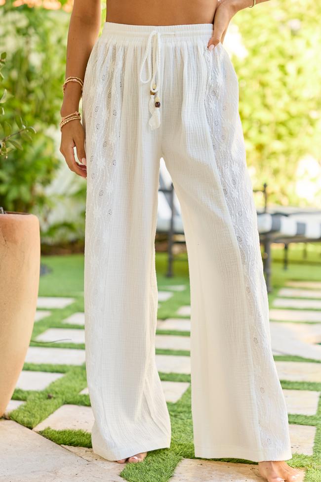 Ashley Ivory Textured Panel Swim Cover-Up Pants