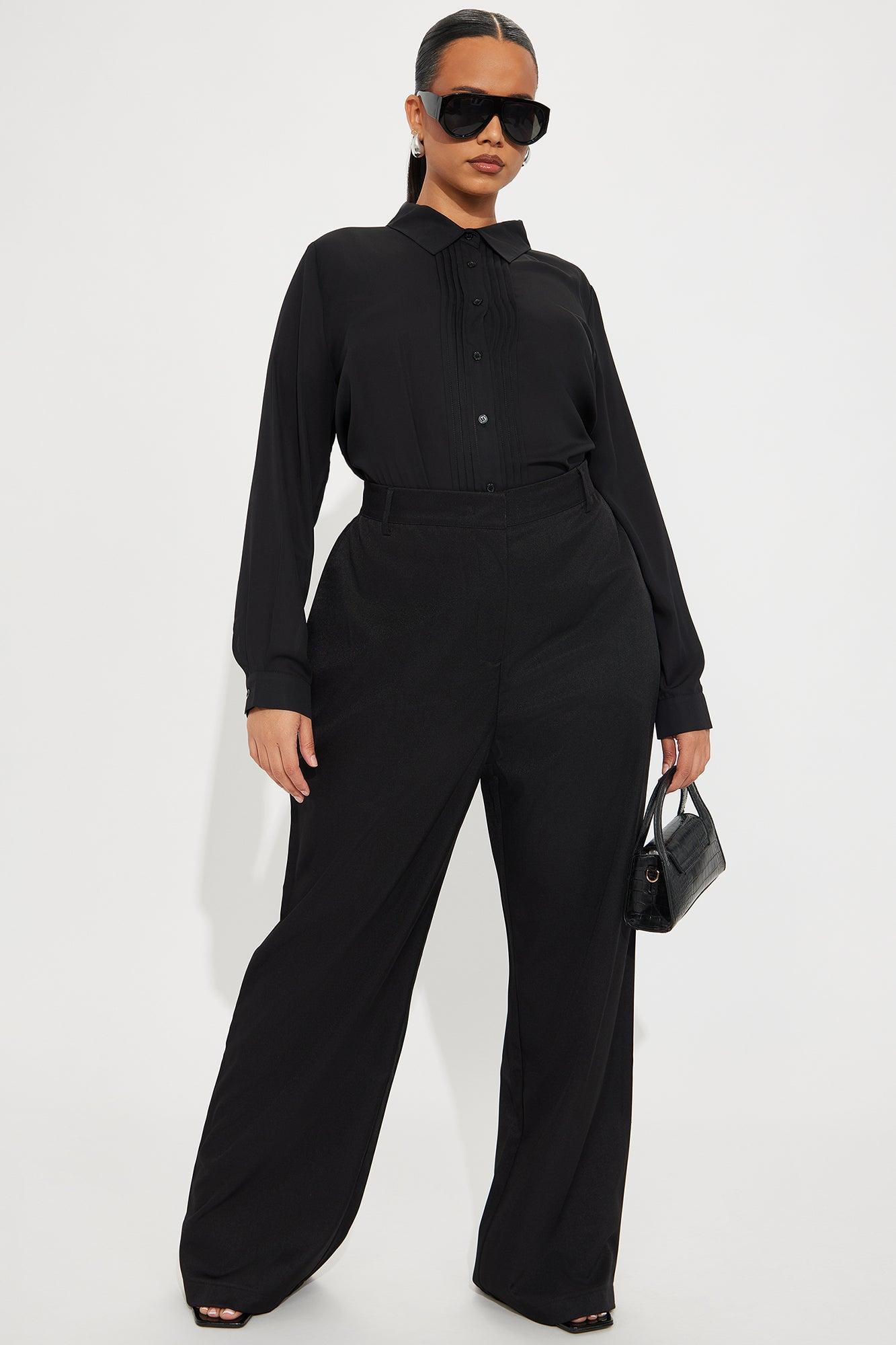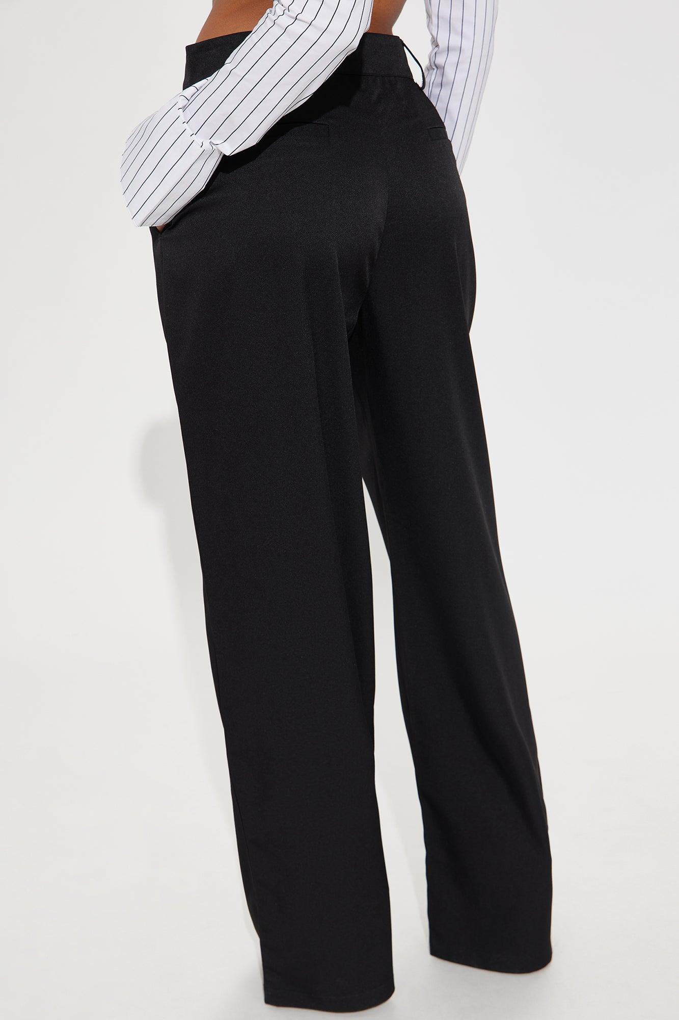 Available In Black And Khaki. Trouser Pant High Rise Hook & Eye Closure Zip Fly Faux Back Welt Pockets Straight Leg Non Stretch 32" Inseam 99% Polyester 1% Spandex Imported California Proposition 65WARNING: Cancer and Reproductive Harm - www.P65Warnings.ca.gov.
