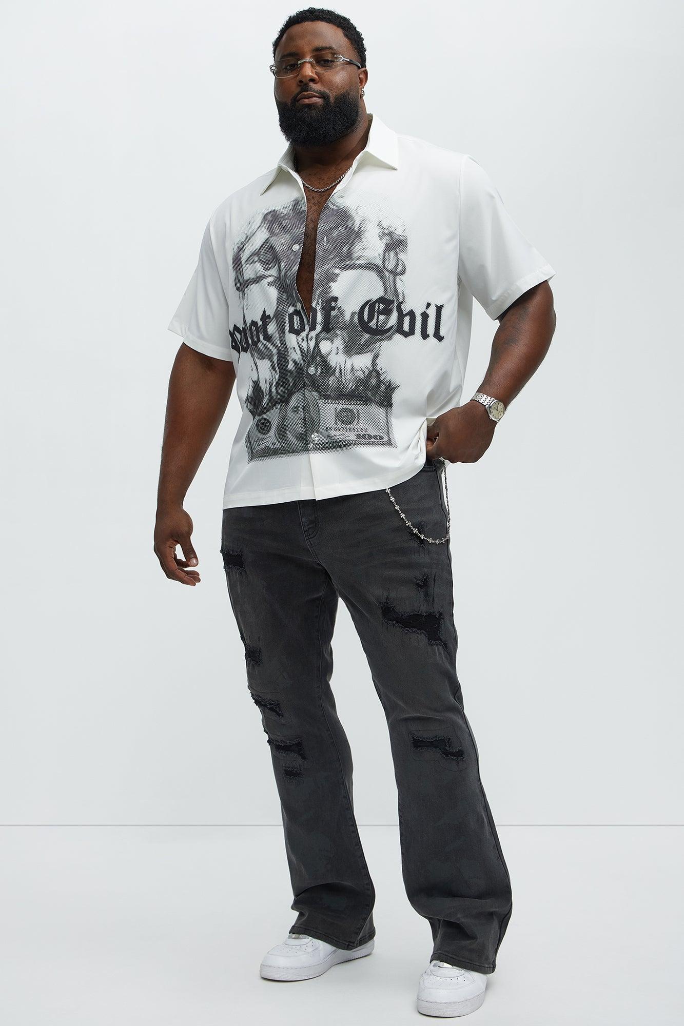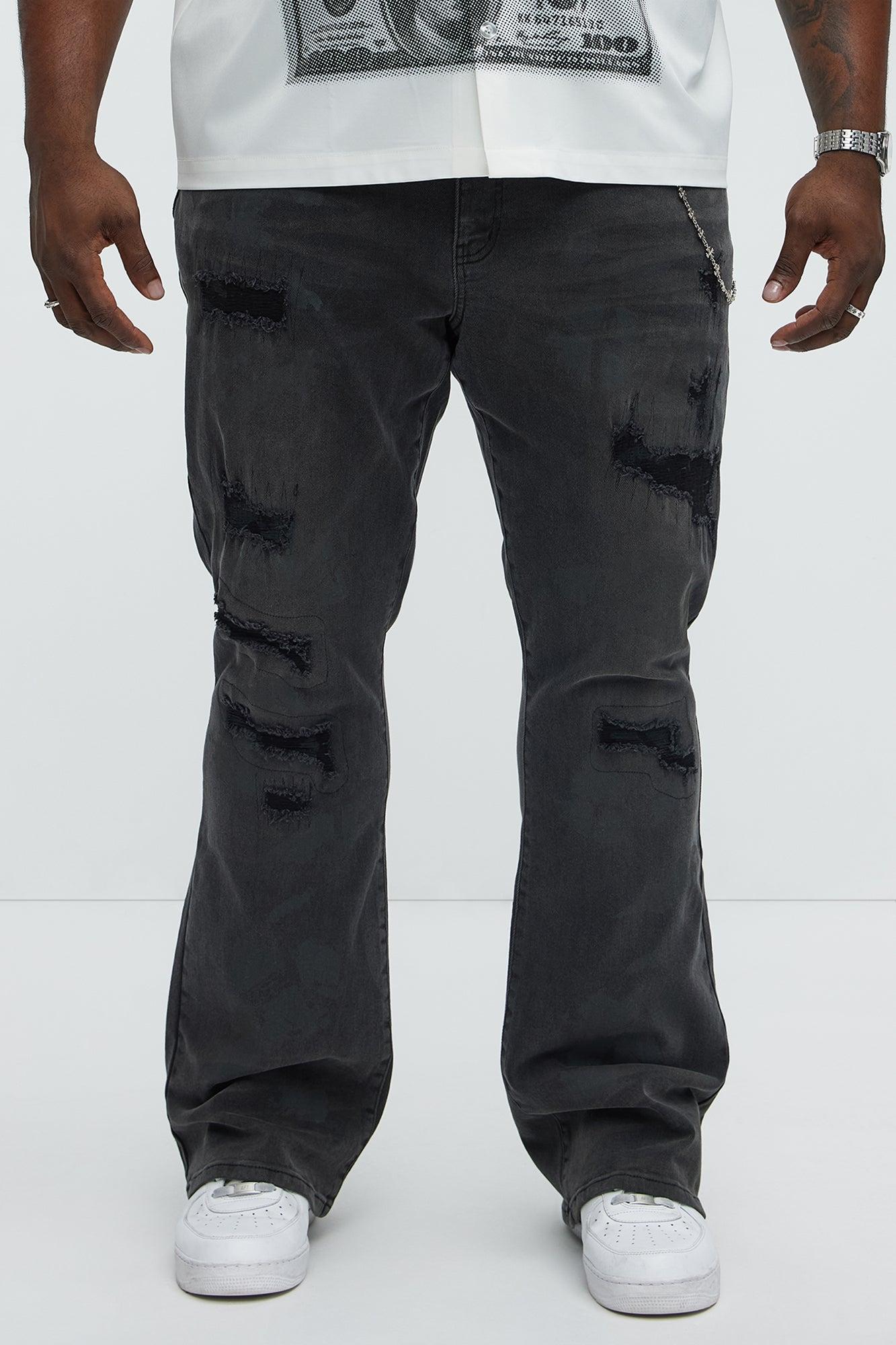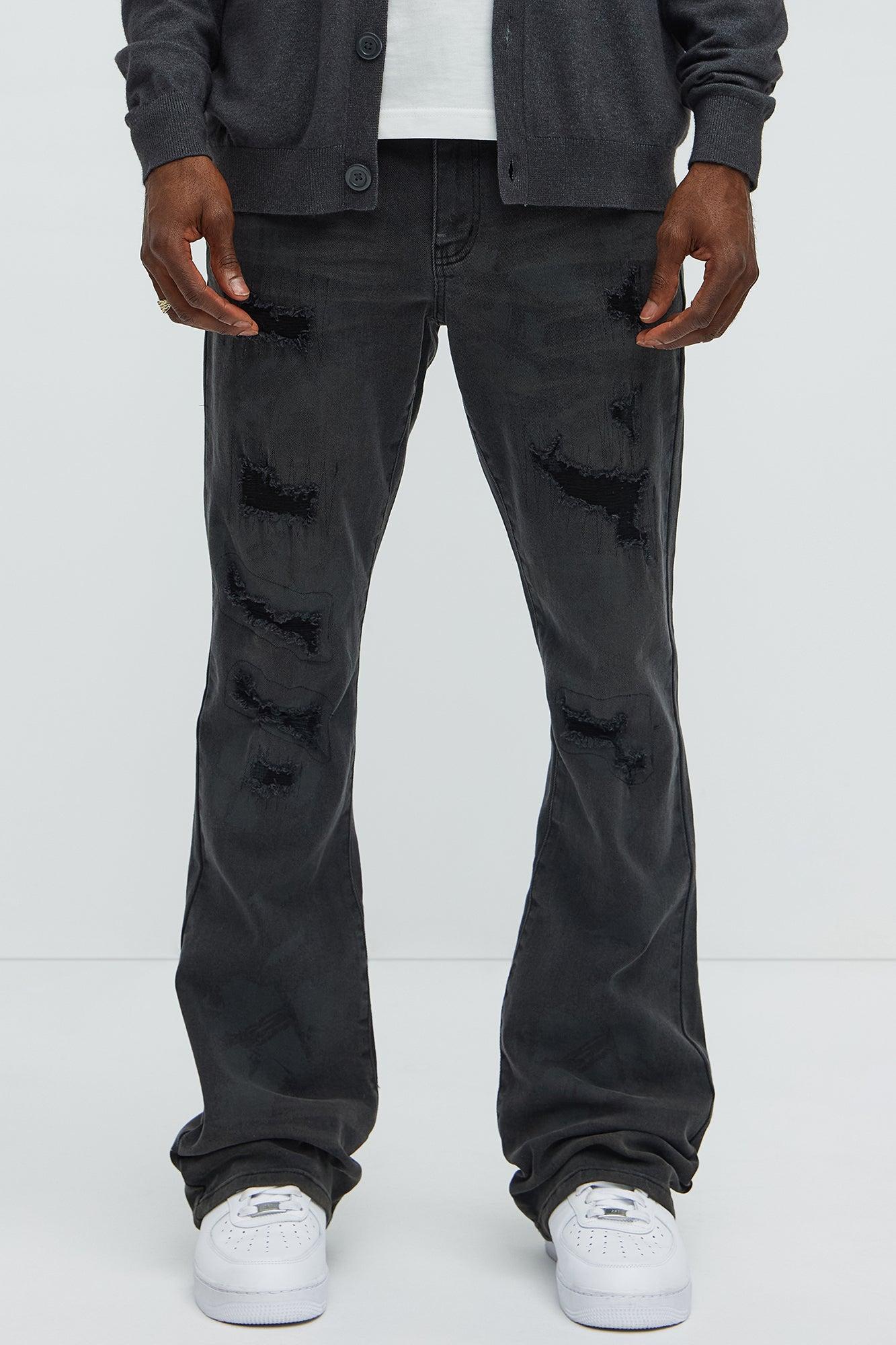 Available In Black. Stretch Denim Slim Flare Fit Zip Fly Button Closure 5 Pocket Detail Ripped Detail 98% Cotton, 2% Spandex Disclaimer: Due To The Specialized Distressing & Wash Process, Each Garment Is Unique. Imported California Proposition 65WARNING: Cancer and Reproductive Harm - www.P65Warnings.ca.gov.