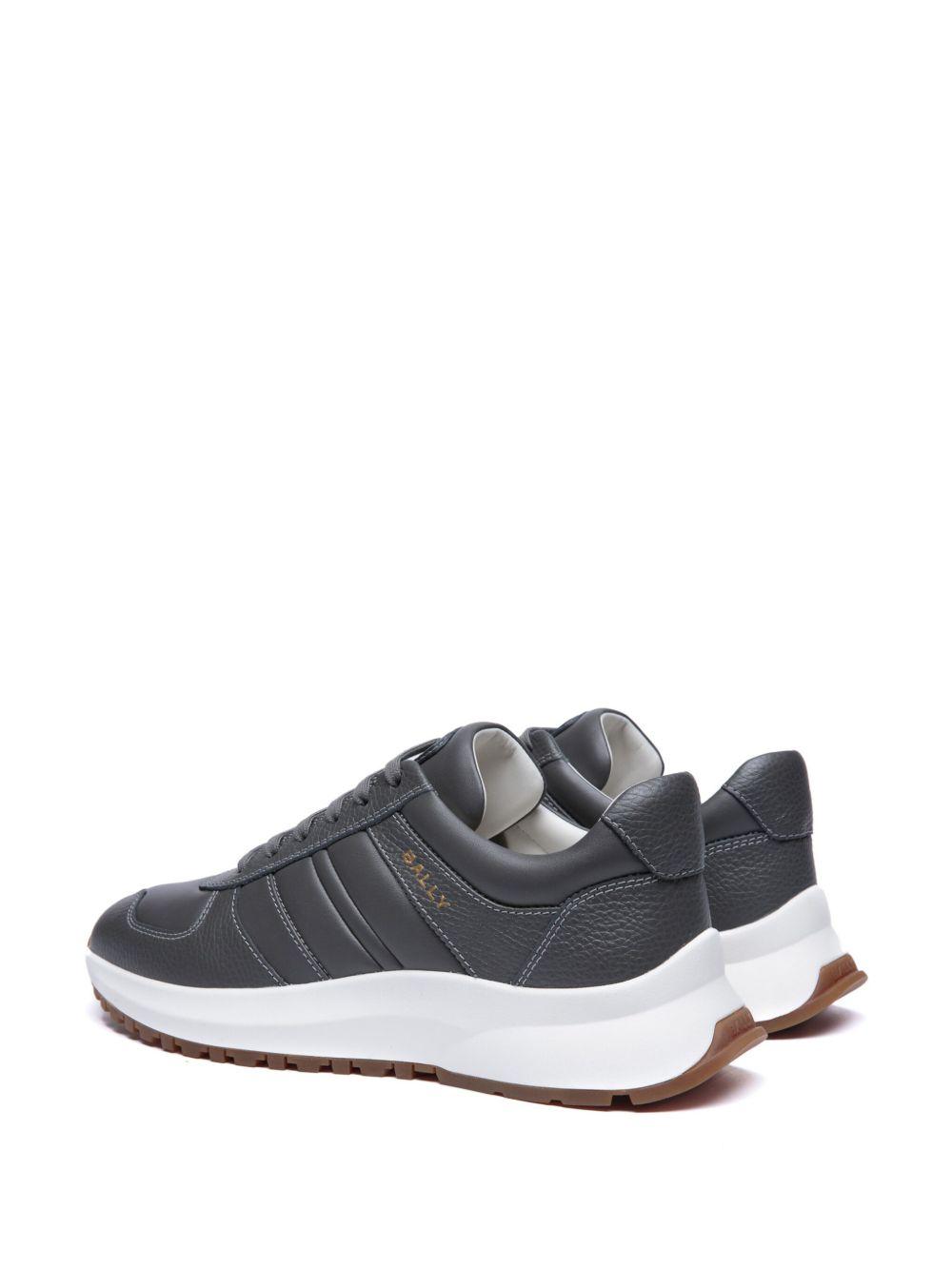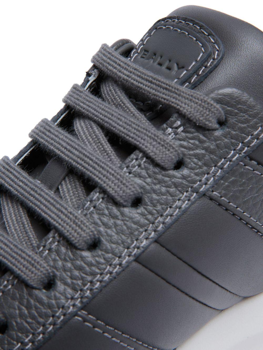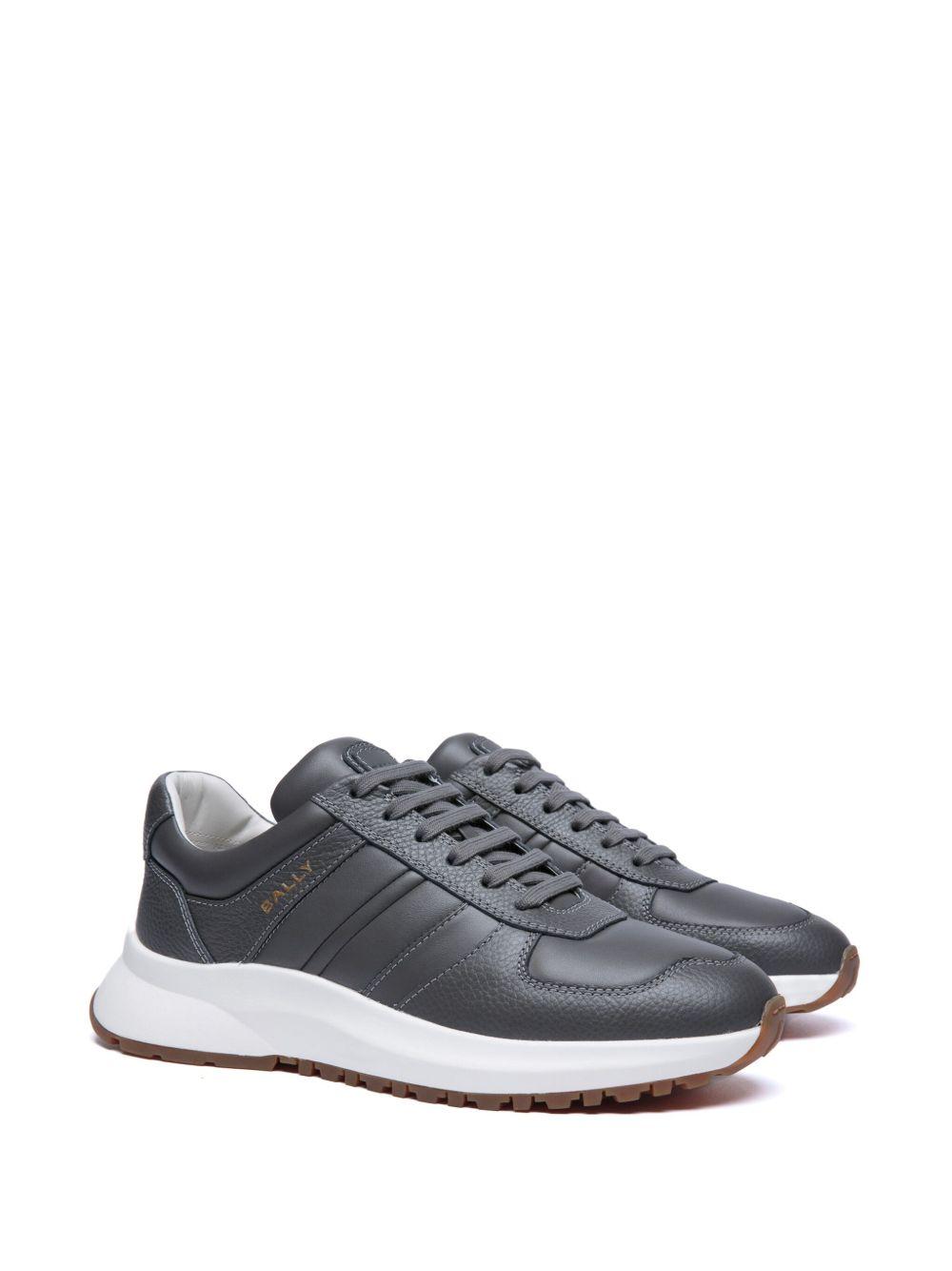 Bally Asken leather sneakers | Grey | blue-grey | calf leather | grained texture | panelled design | logo print to the side | logo-debossed tongue | round toe | front lace-up fastening | branded insole | chunky rubber sole | Calf Leather/Bovine Leather (top grain)/Fabric/Rubber | Low-Tops | Sneakers | Shoes | Men