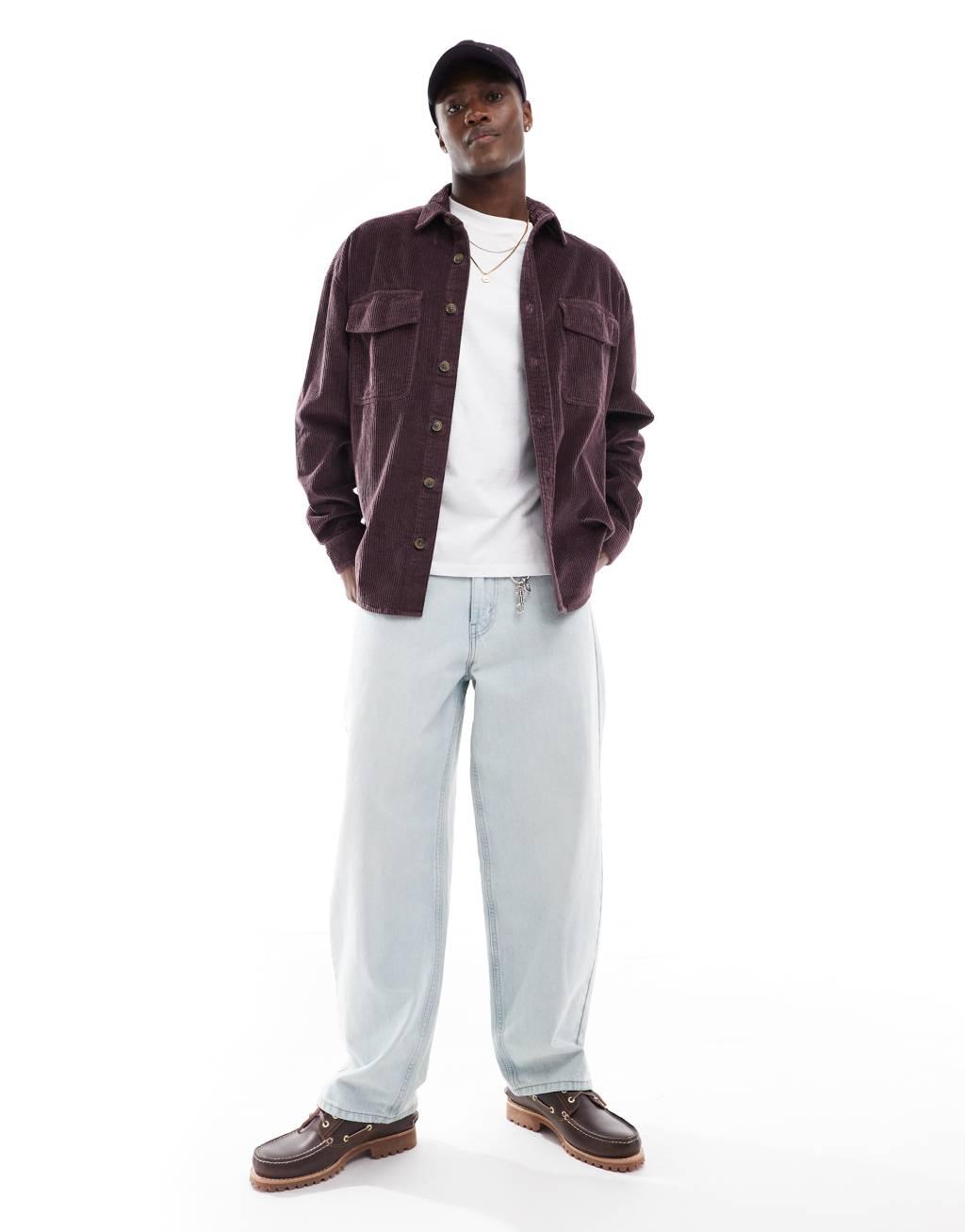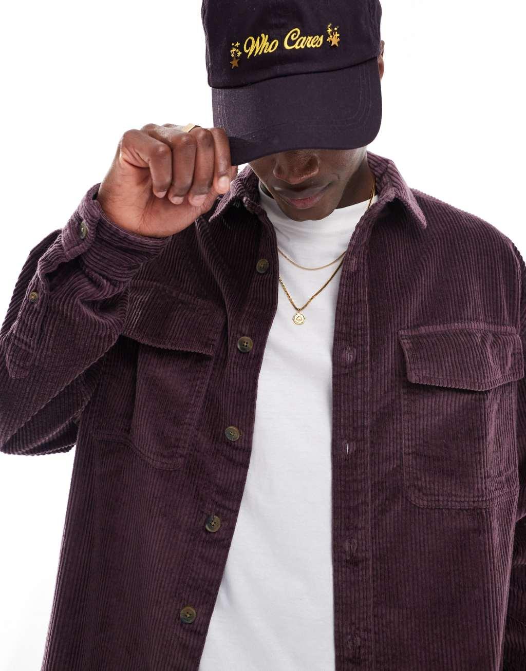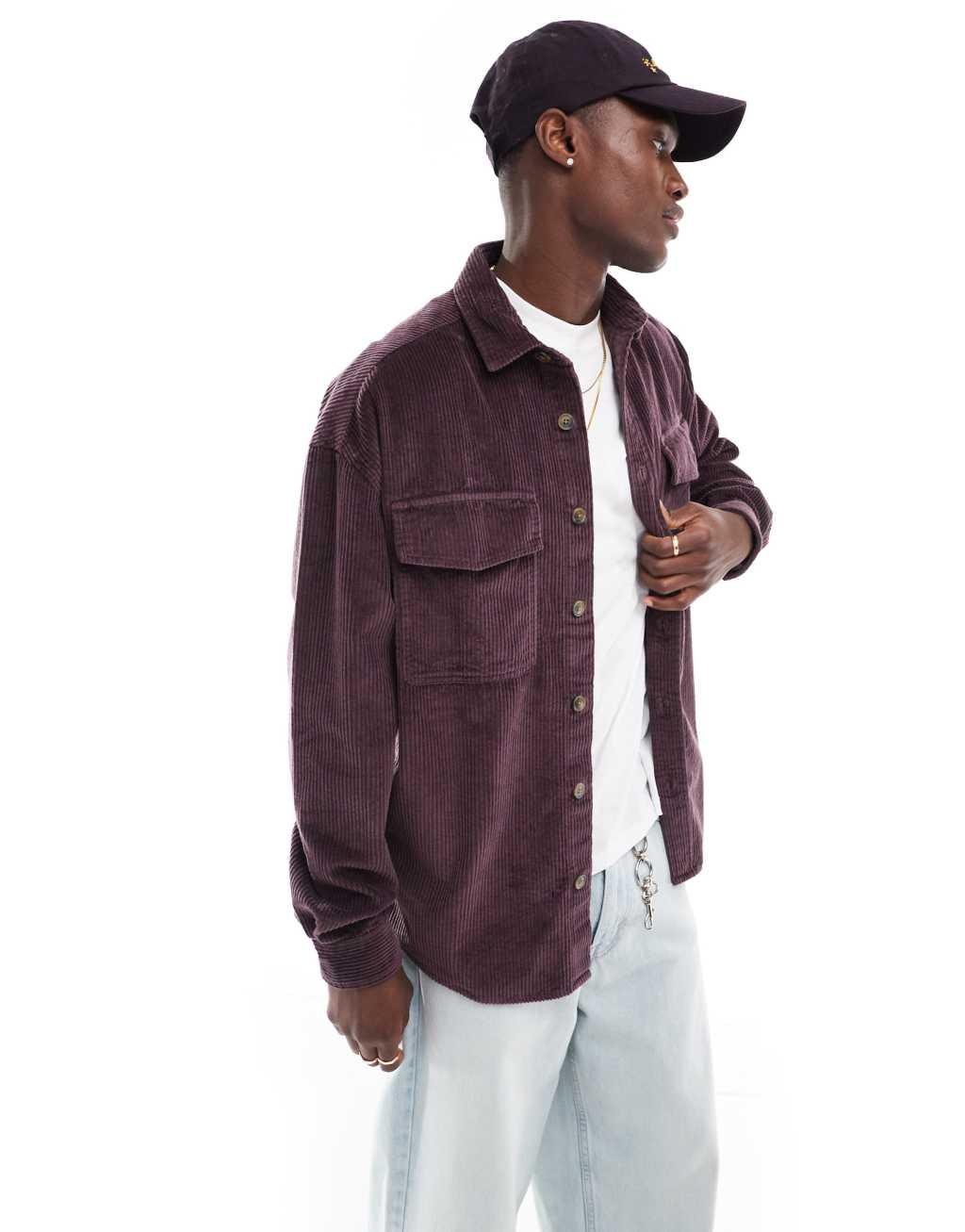 ASOS DESIGN 90s oversized cord shirt with patch pocket in dark plum
