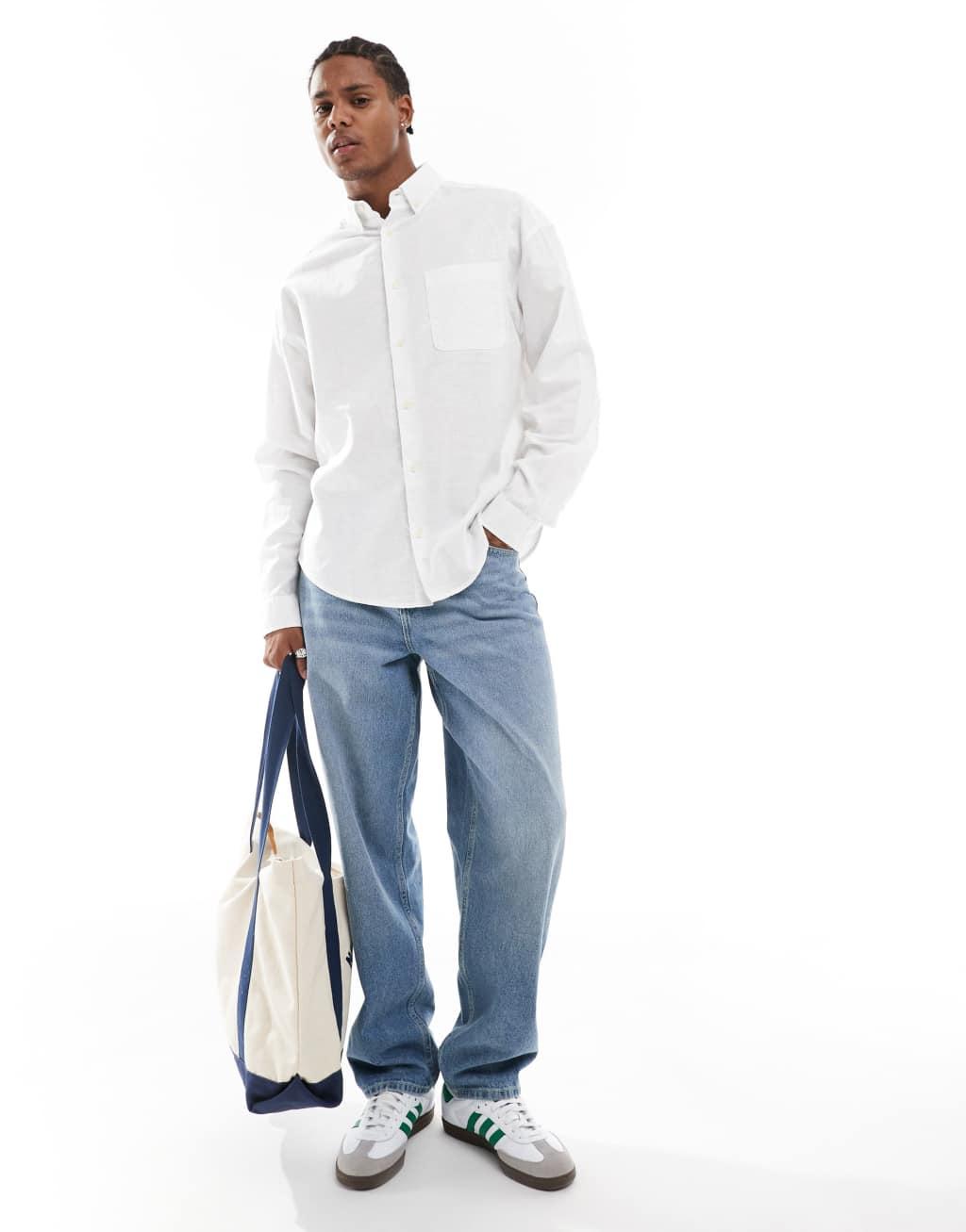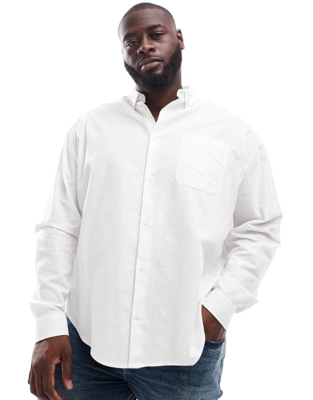 ASOS DESIGN 90s oversized linen blend shirt in white | ASOS