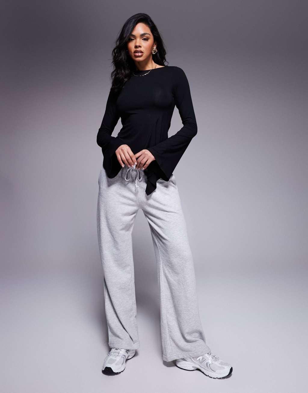Top by ASOS DESIGN Boat neck Angel sleeves Godet detail Asymmetrical hem Regular fit