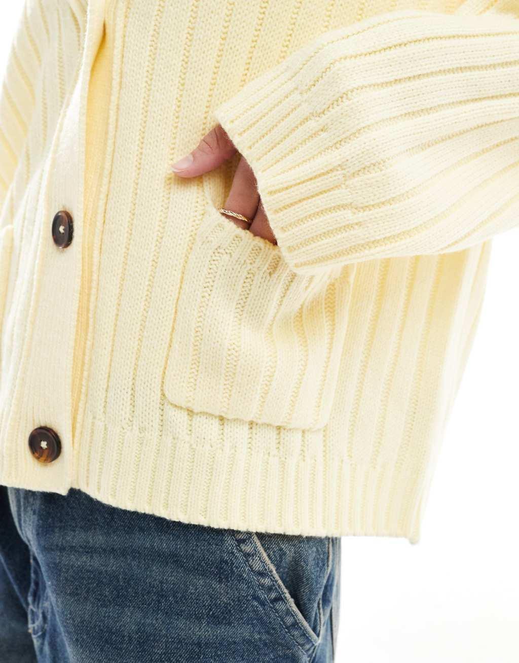 ASOS DESIGN boxy longline ribbed cardigan in buttermilk