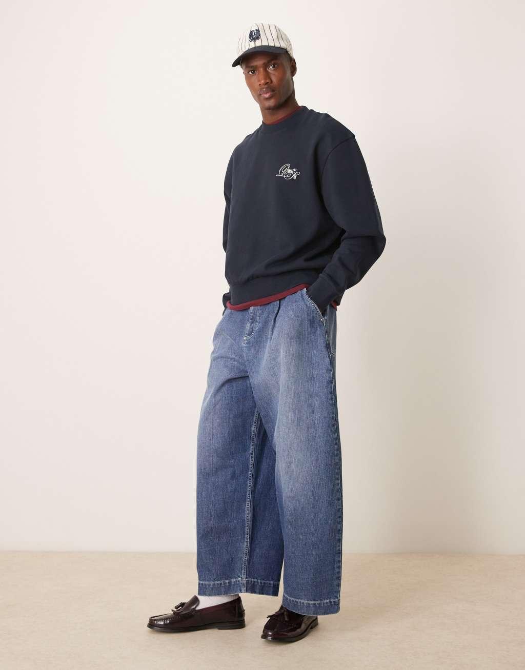 ASOS DESIGN boxy oversized sweatshirt with chest embroidery in navy