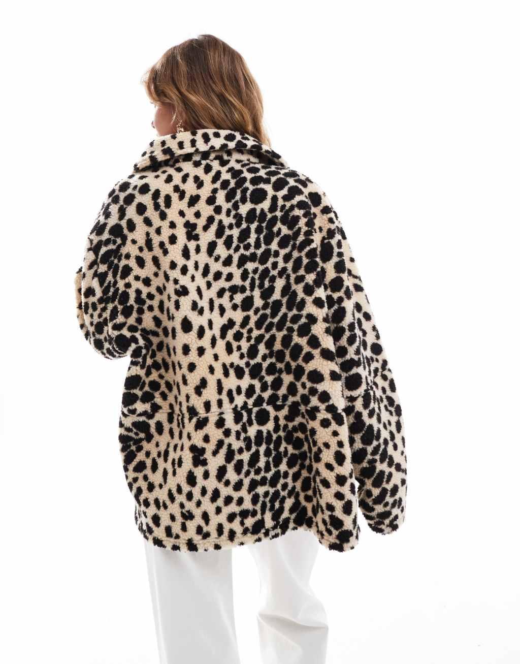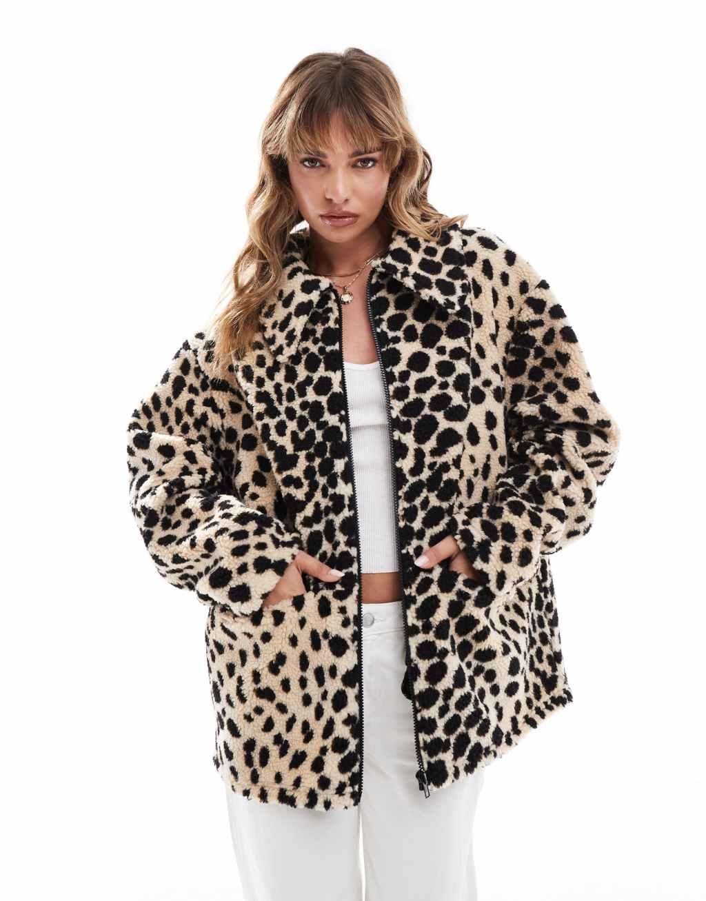 ASOS DESIGN collared borg zip up sweatshirt in leopard