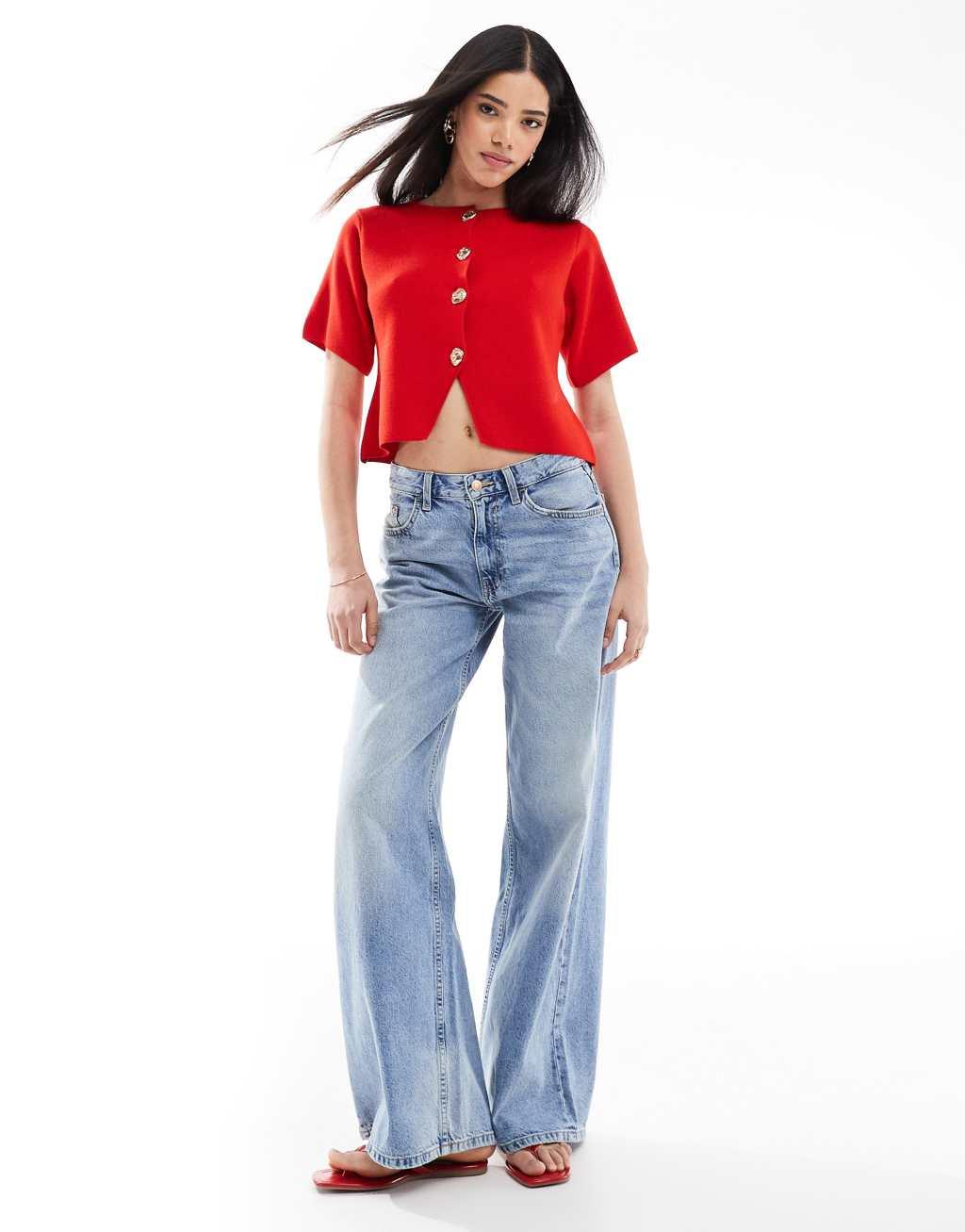 ASOS DESIGN compact knit short sleeve cardigan in red