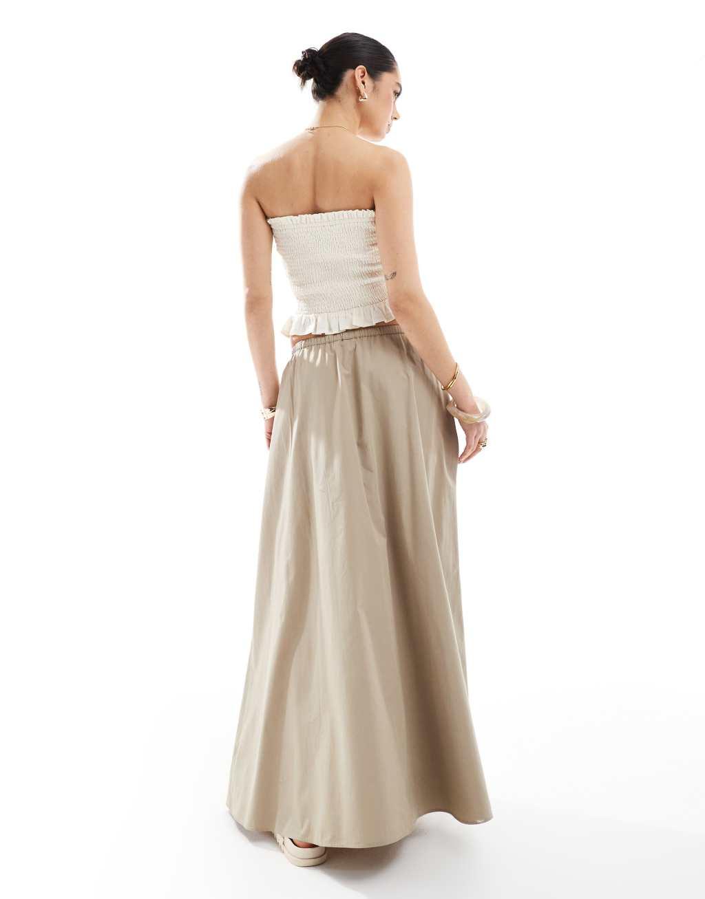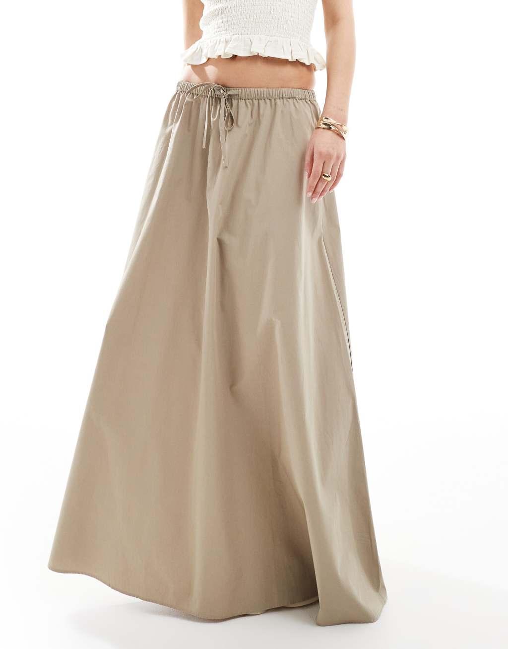 ASOS DESIGN cotton tie waist A-line midi skirt in khaki