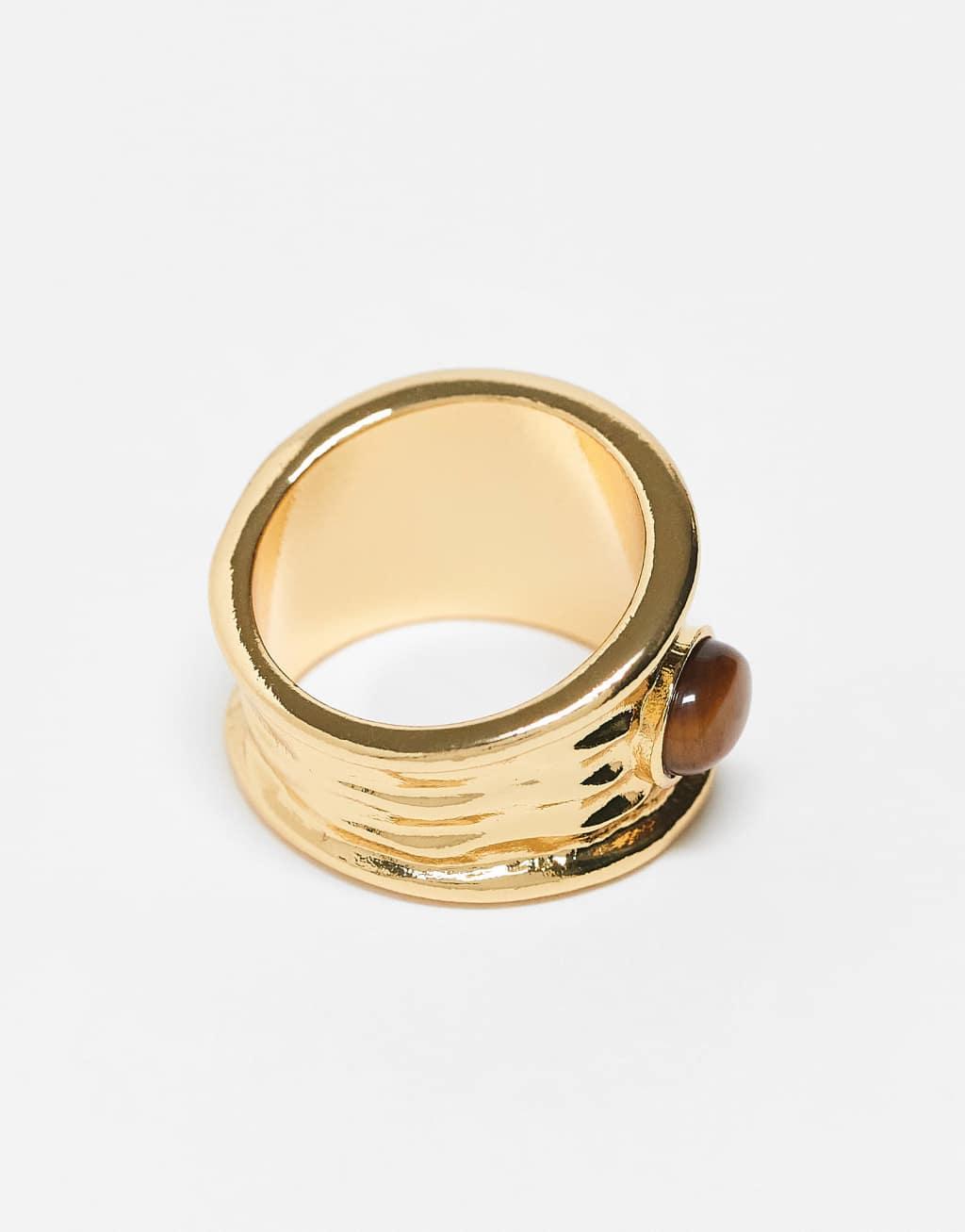 ASOS DESIGN Curve 14k gold plated ring with real tigers eye semi precious stone design