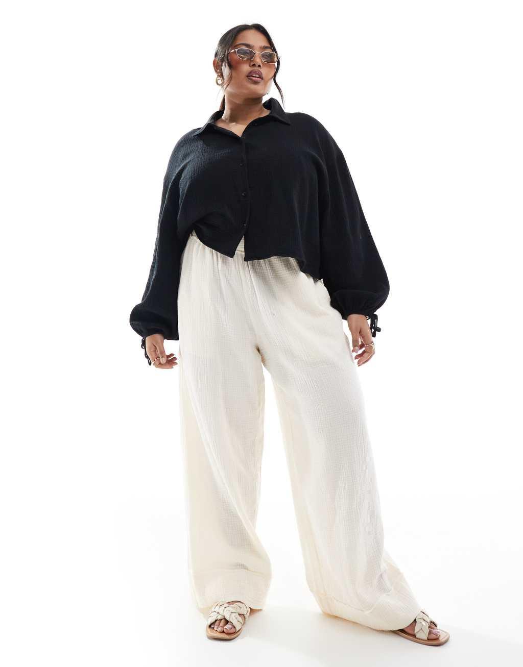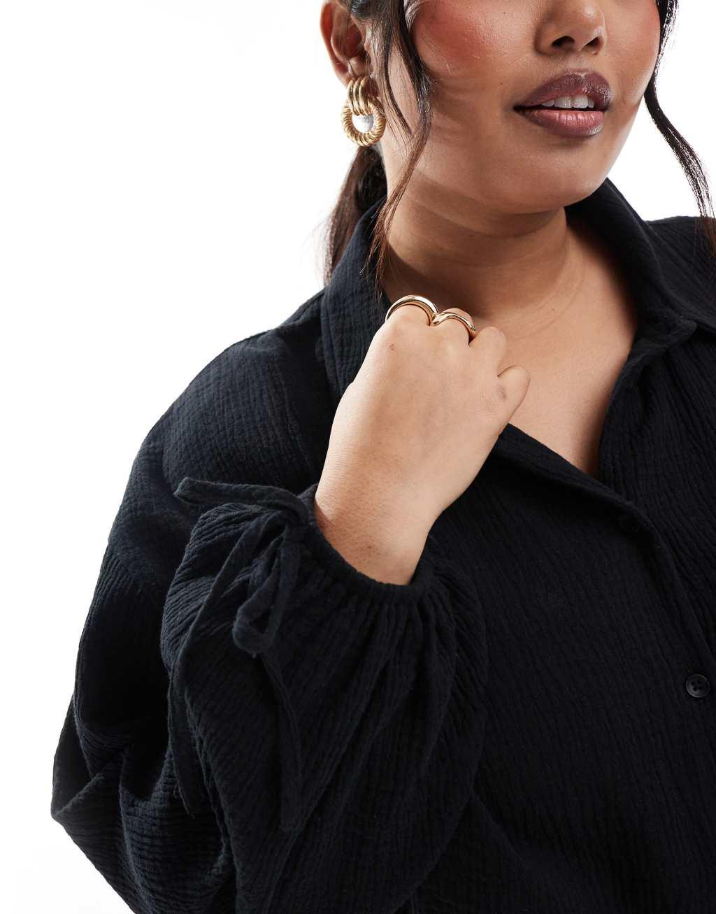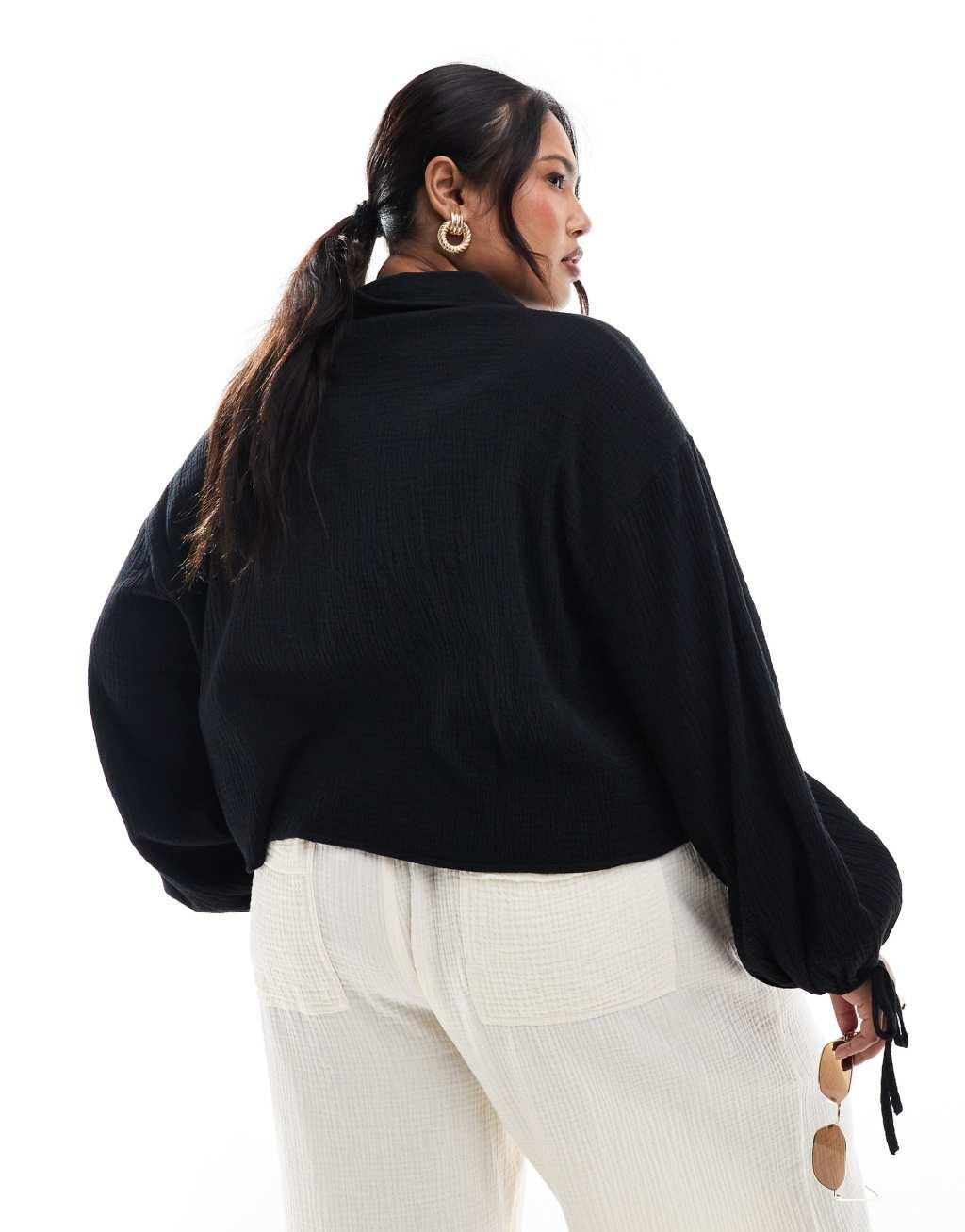 ASOS DESIGN Curve cropped textured cotton shirt in black