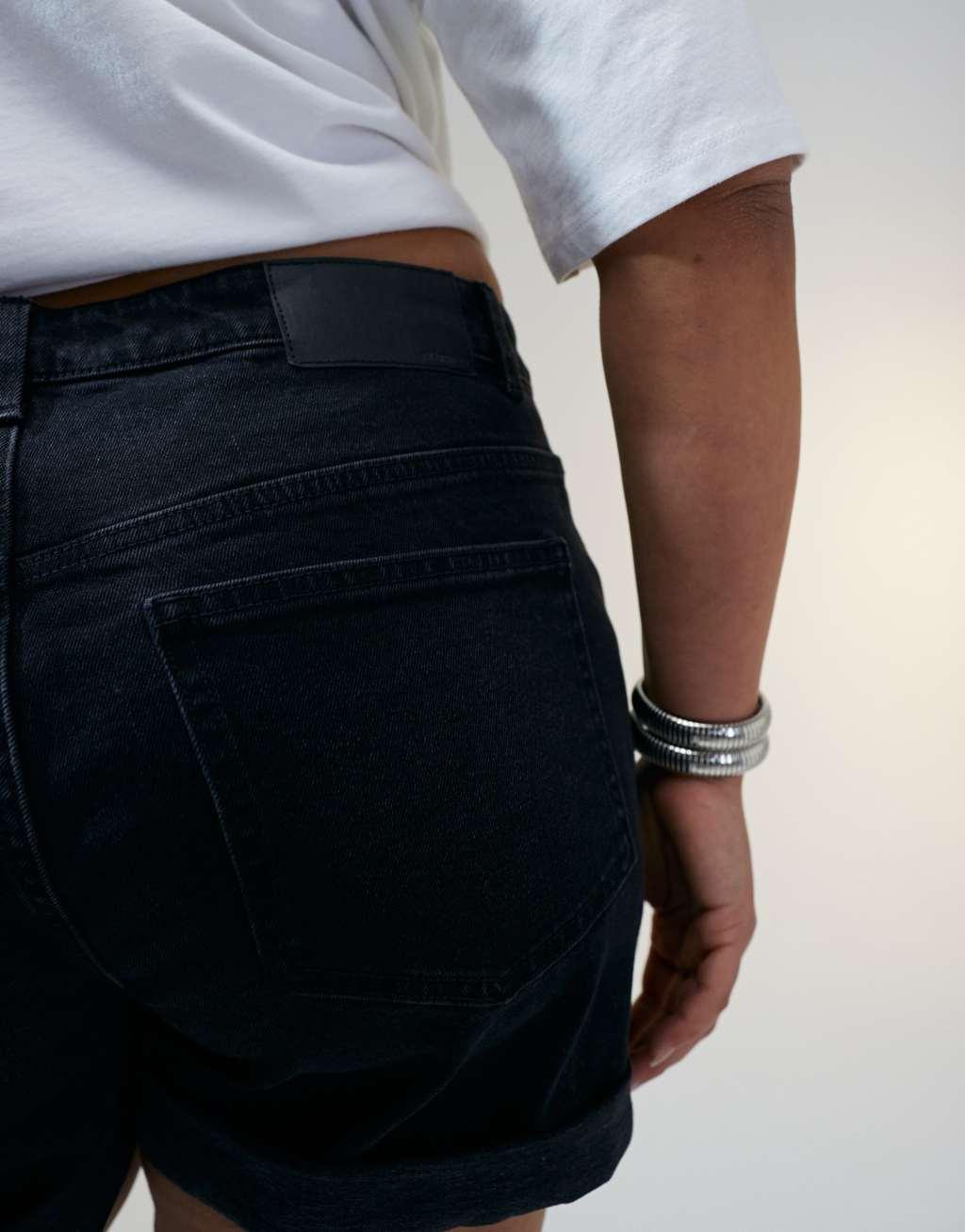 ASOS DESIGN Curve denim comfort mom short in washed black