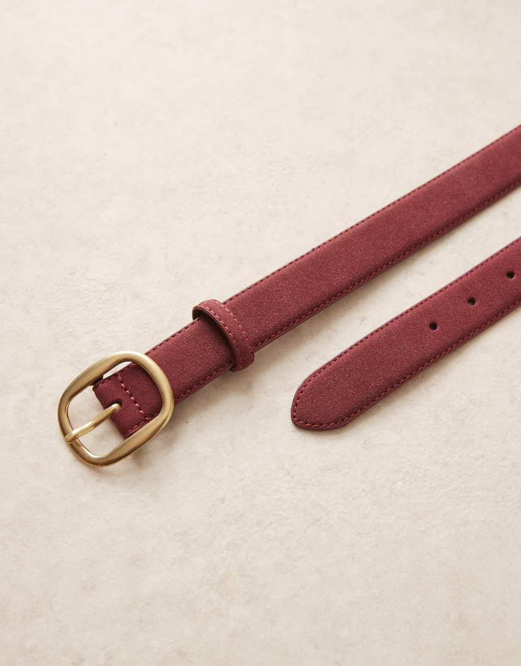 ASOS DESIGN CURVE faux suede waist and hip jeans belt in burgundy