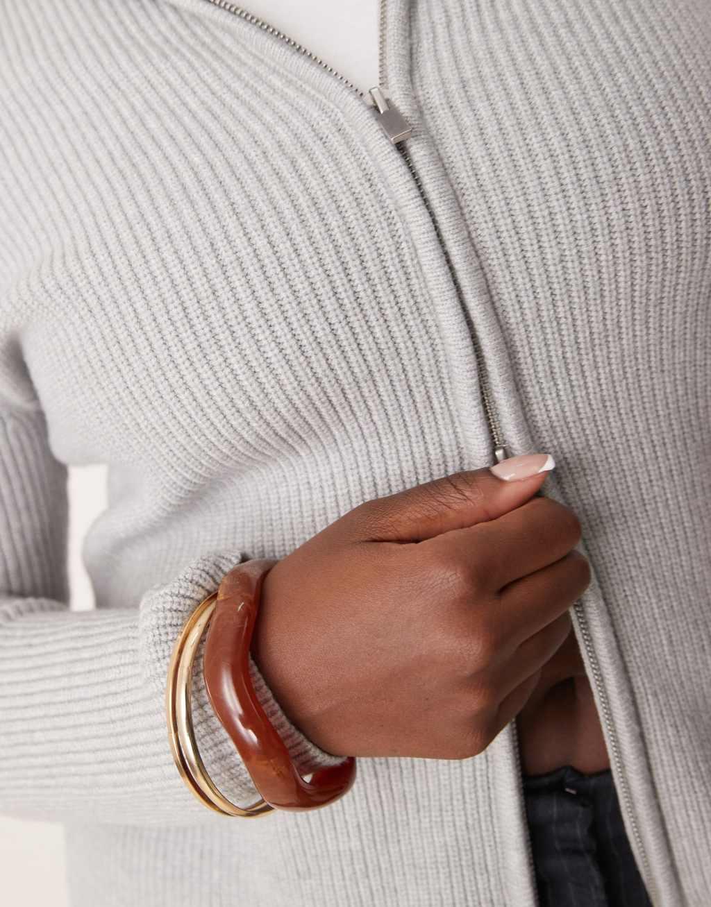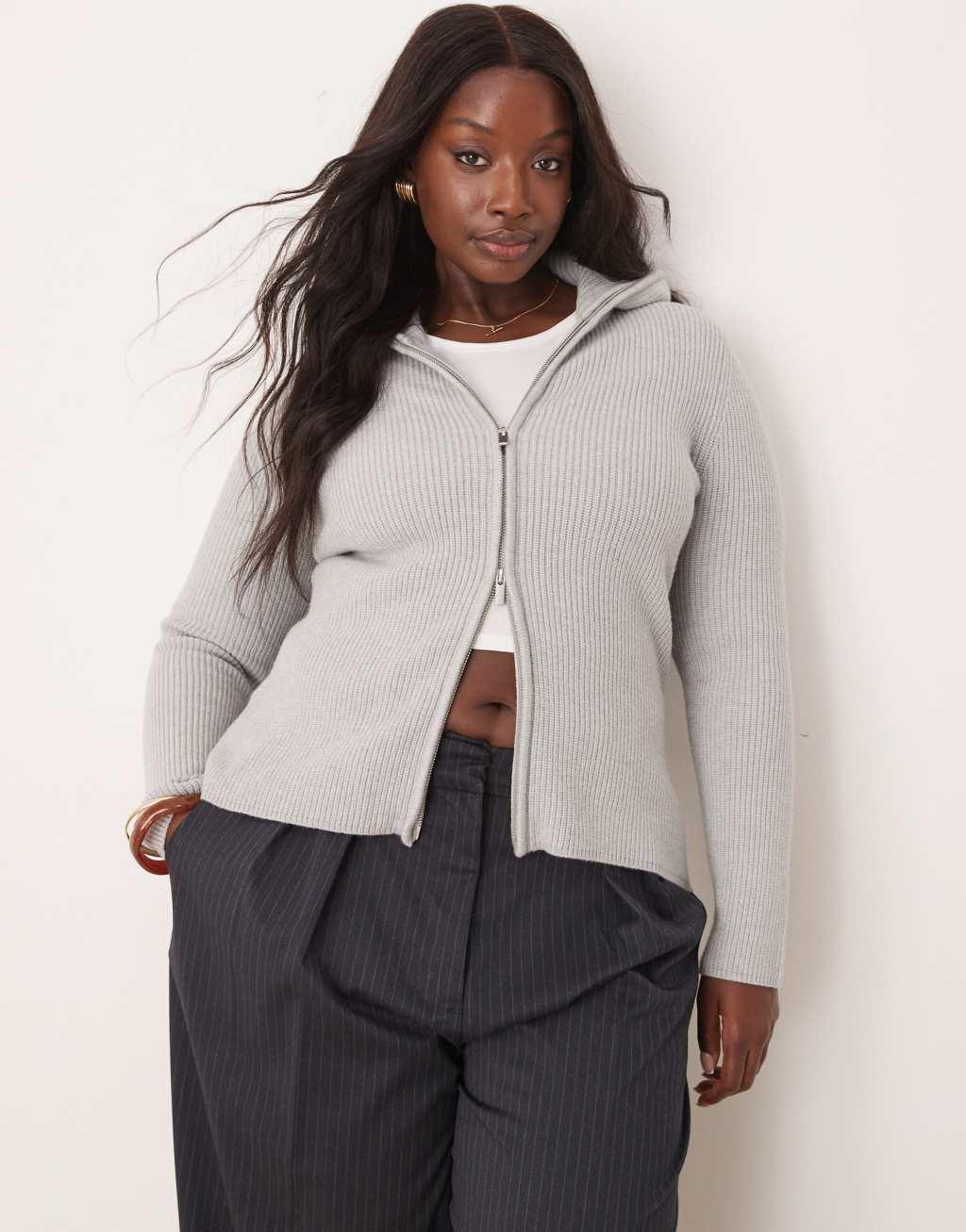 ASOS DESIGN Curve knitted zip through collar cardigan in mid gray