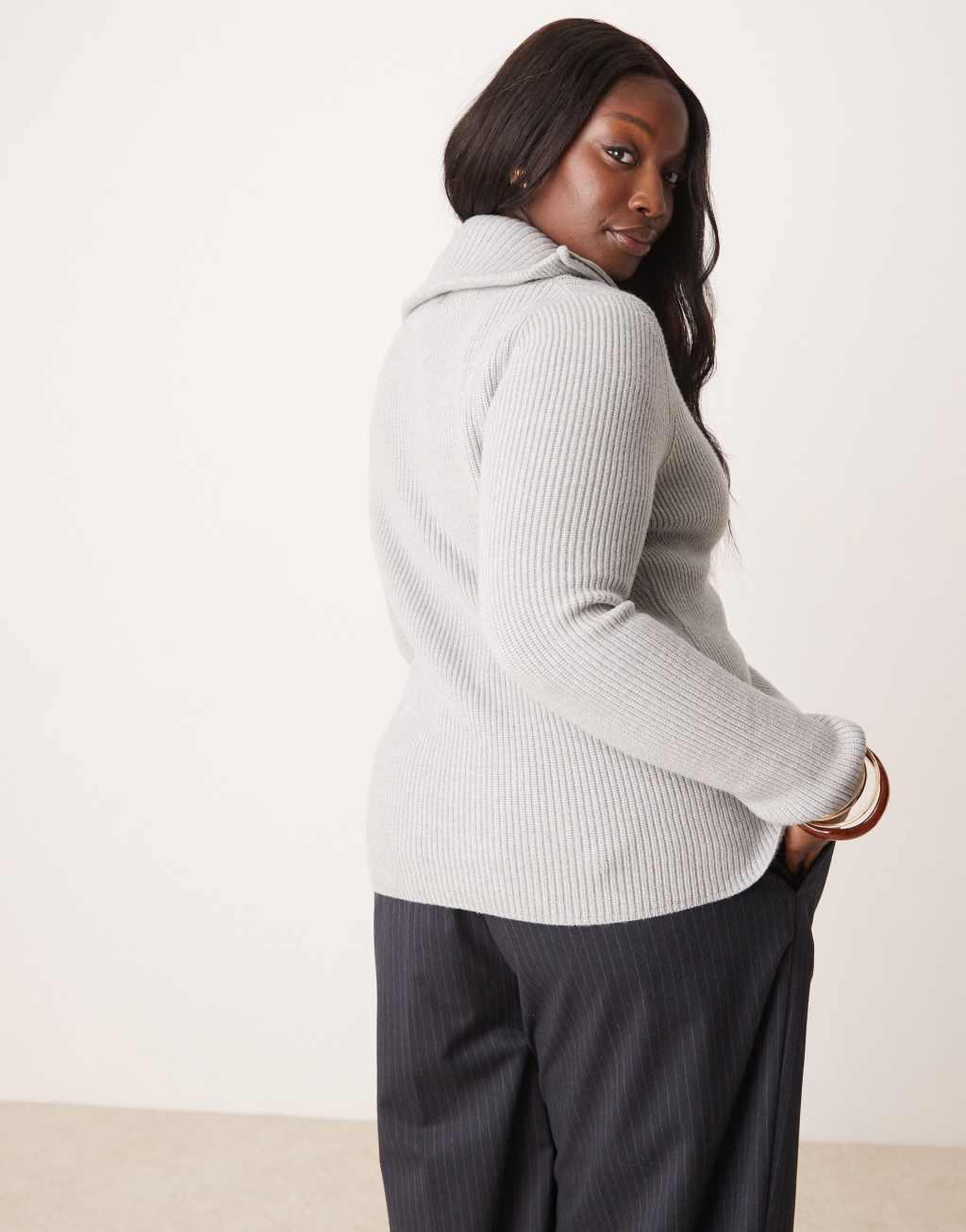 Sweaters & Cardigans by ASOS Curve Cozy, meet chic Funnel neck Zip fastening Long sleeves Regular fit