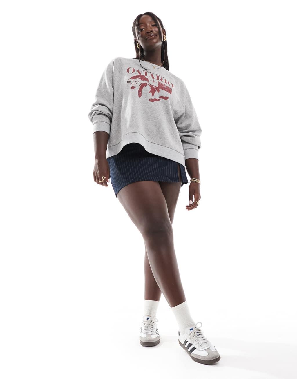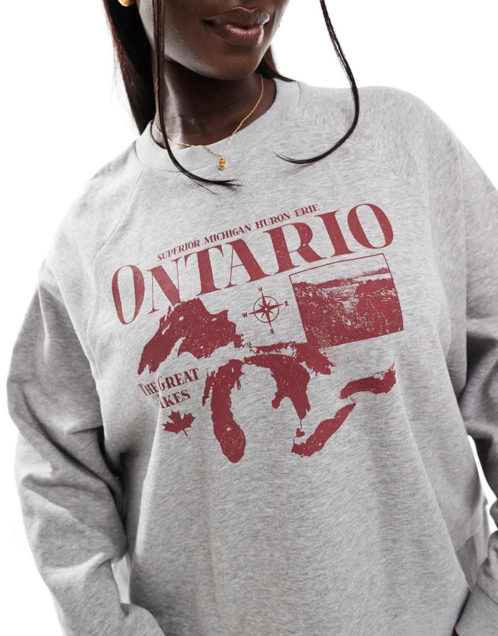 ASOS DESIGN Curve raglan oversized sweat with ontario graphic in gray heather