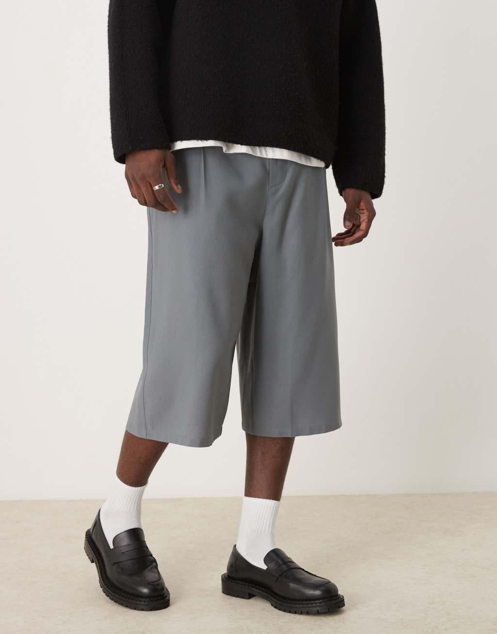 ASOS DESIGN long length jorts with pleat detailing in khaki
