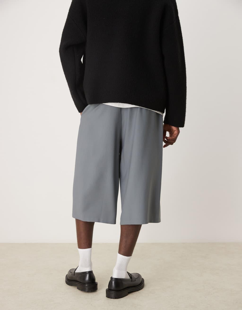 ASOS DESIGN ribbed jorts with embroidered patch in gray