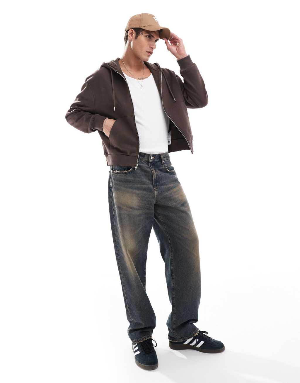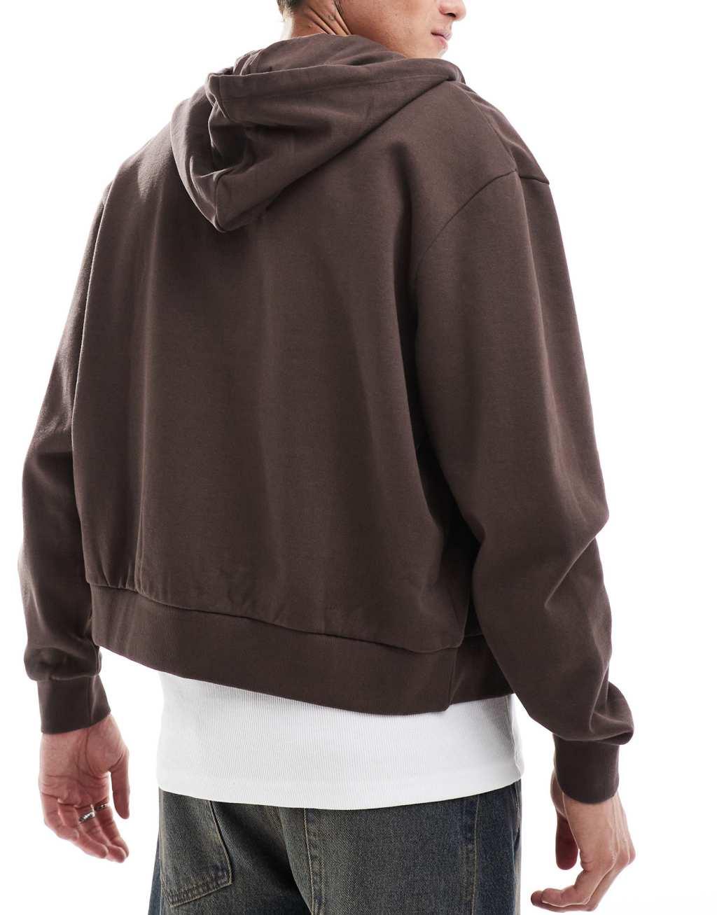 ASOS DESIGN essential boxy oversized zip up hoodie in brown