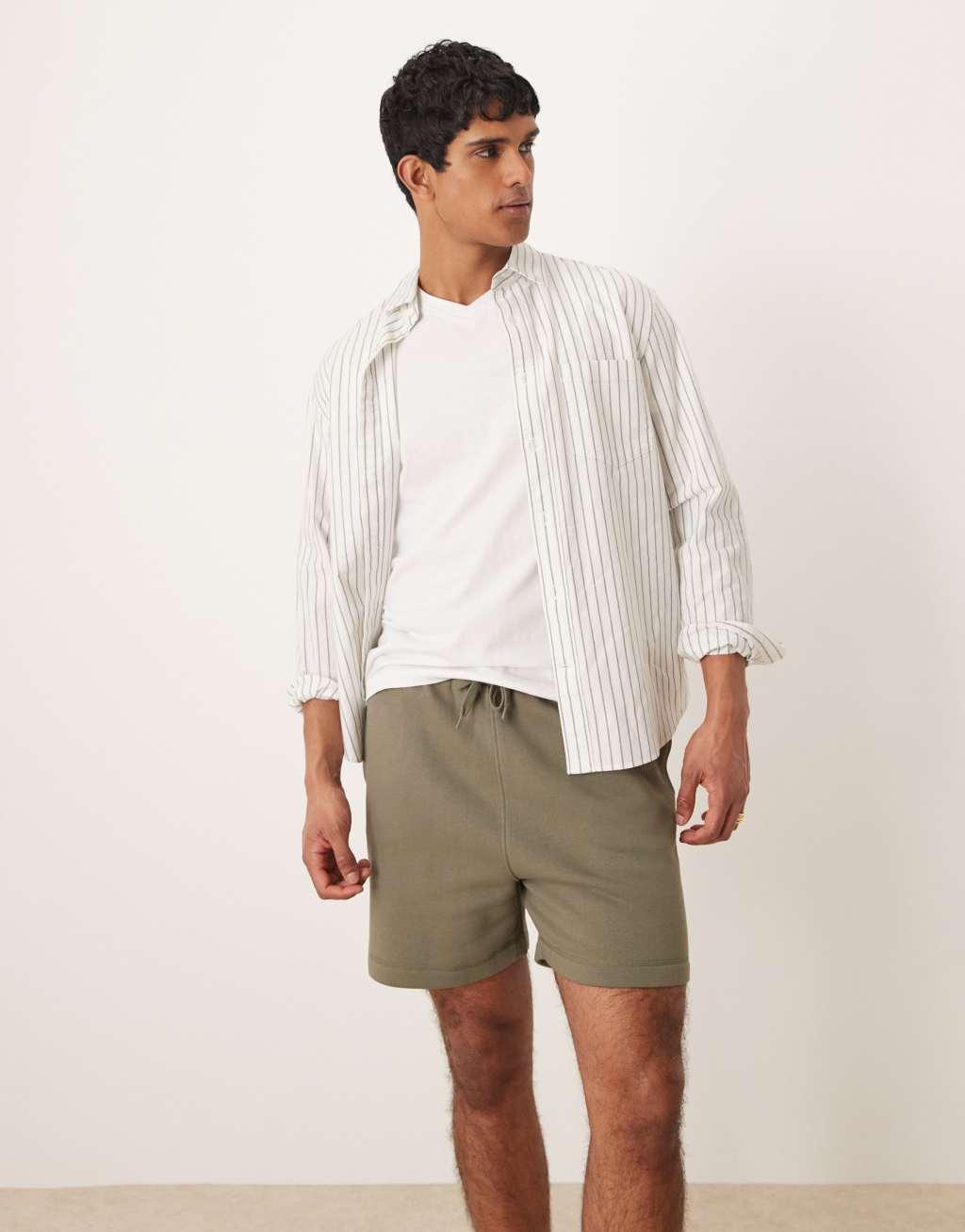 ASOS DESIGN oversized waffle shorts in khaki