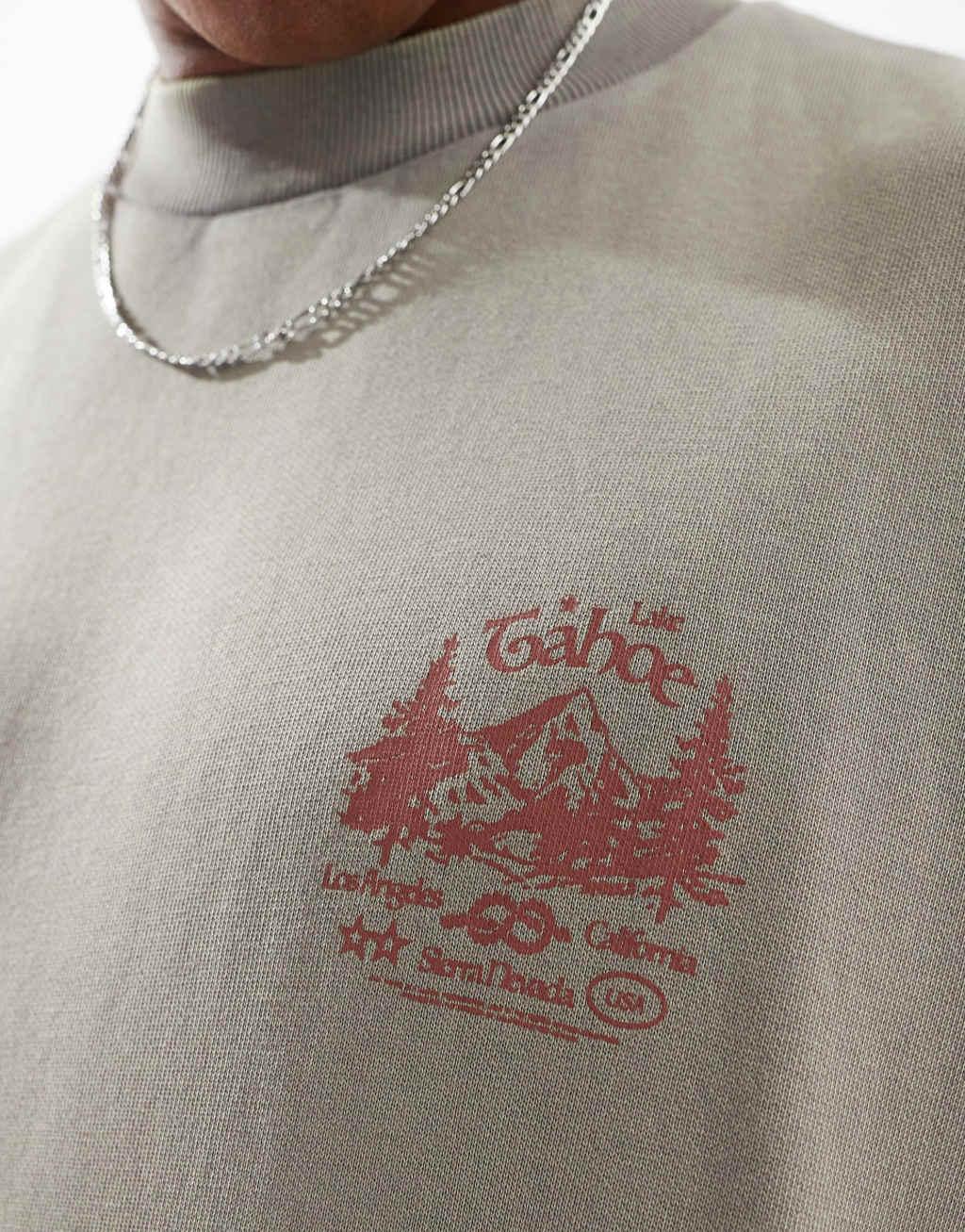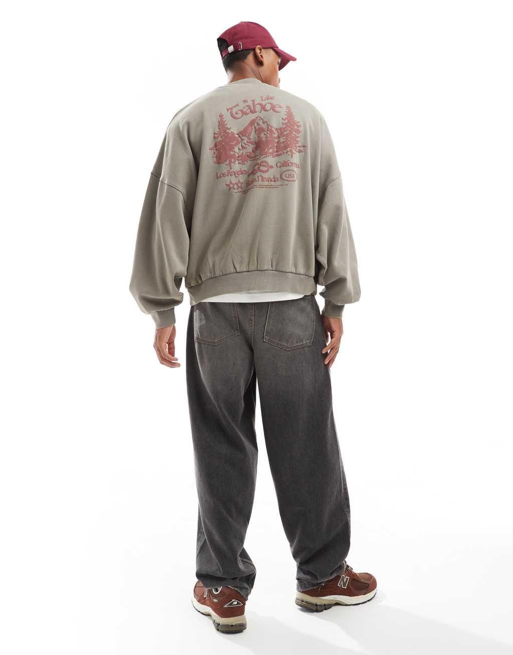 ASOS DESIGN extreme oversized sweatshirt with front and back mountain puff print in washed gray