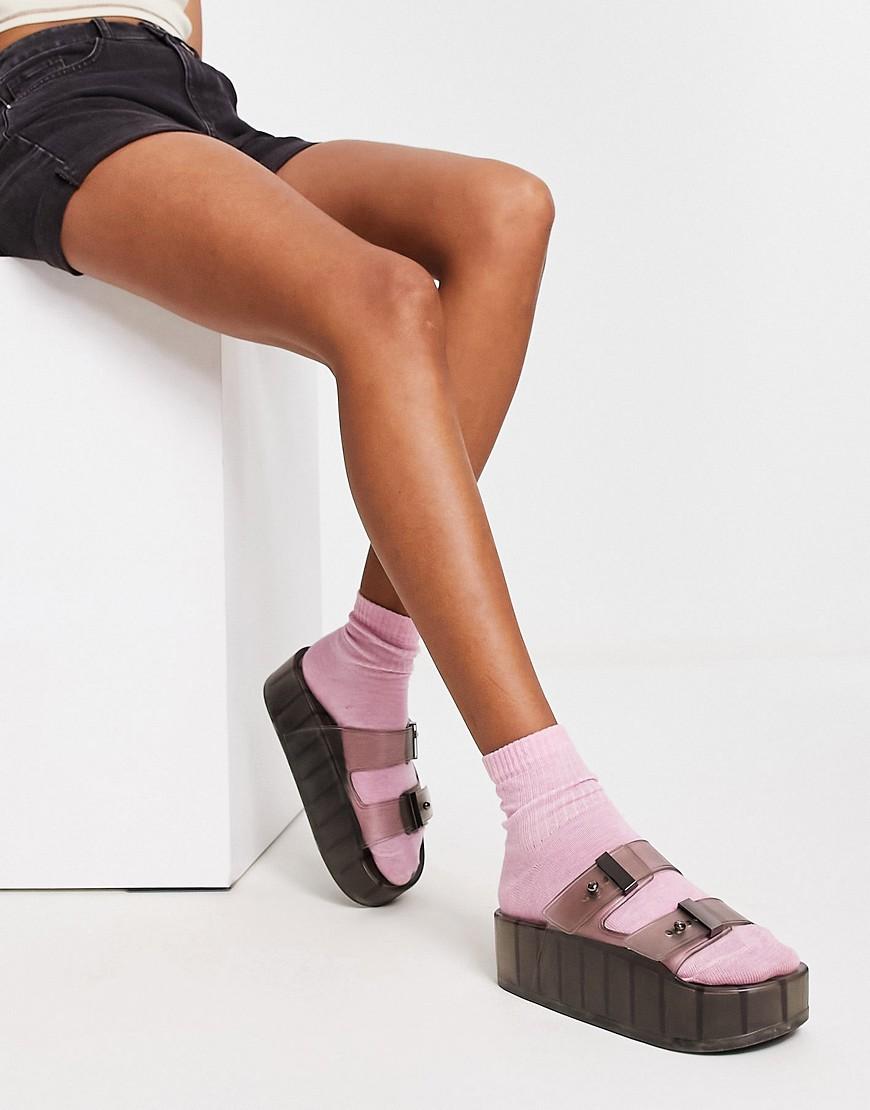 ASOS DESIGN Finale buckle platform flat sandals BLACK