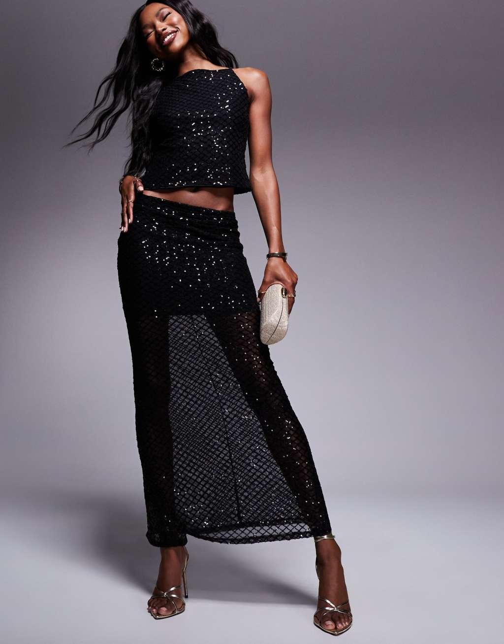 ASOS DESIGN fishtail maxi skirt in black sequin - part of a set