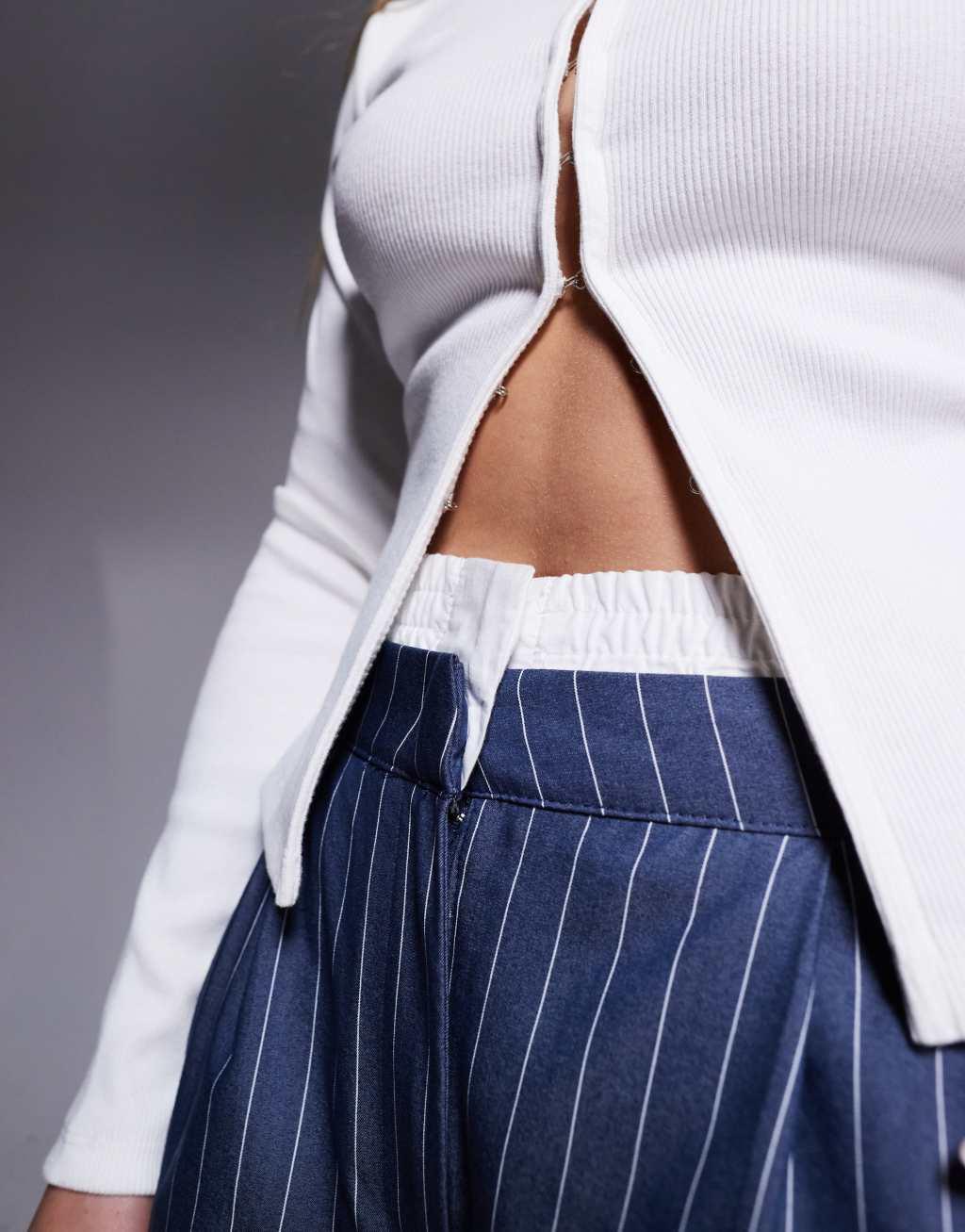 ASOS DESIGN hook and eye front ribbed cardigan in ecru