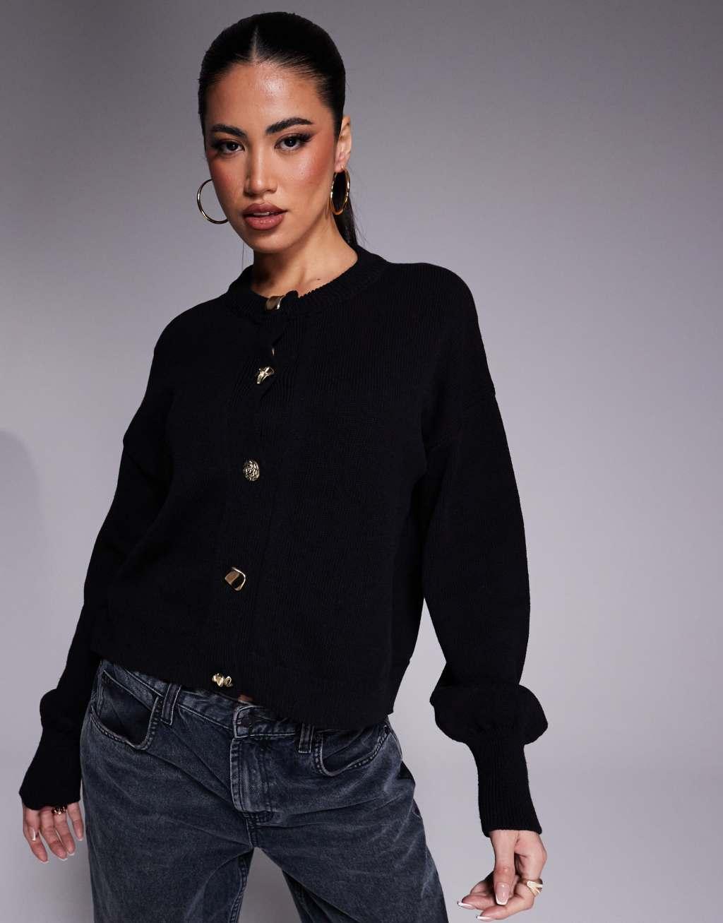 ASOS DESIGN knit cardigan with mixed gold buttons in black