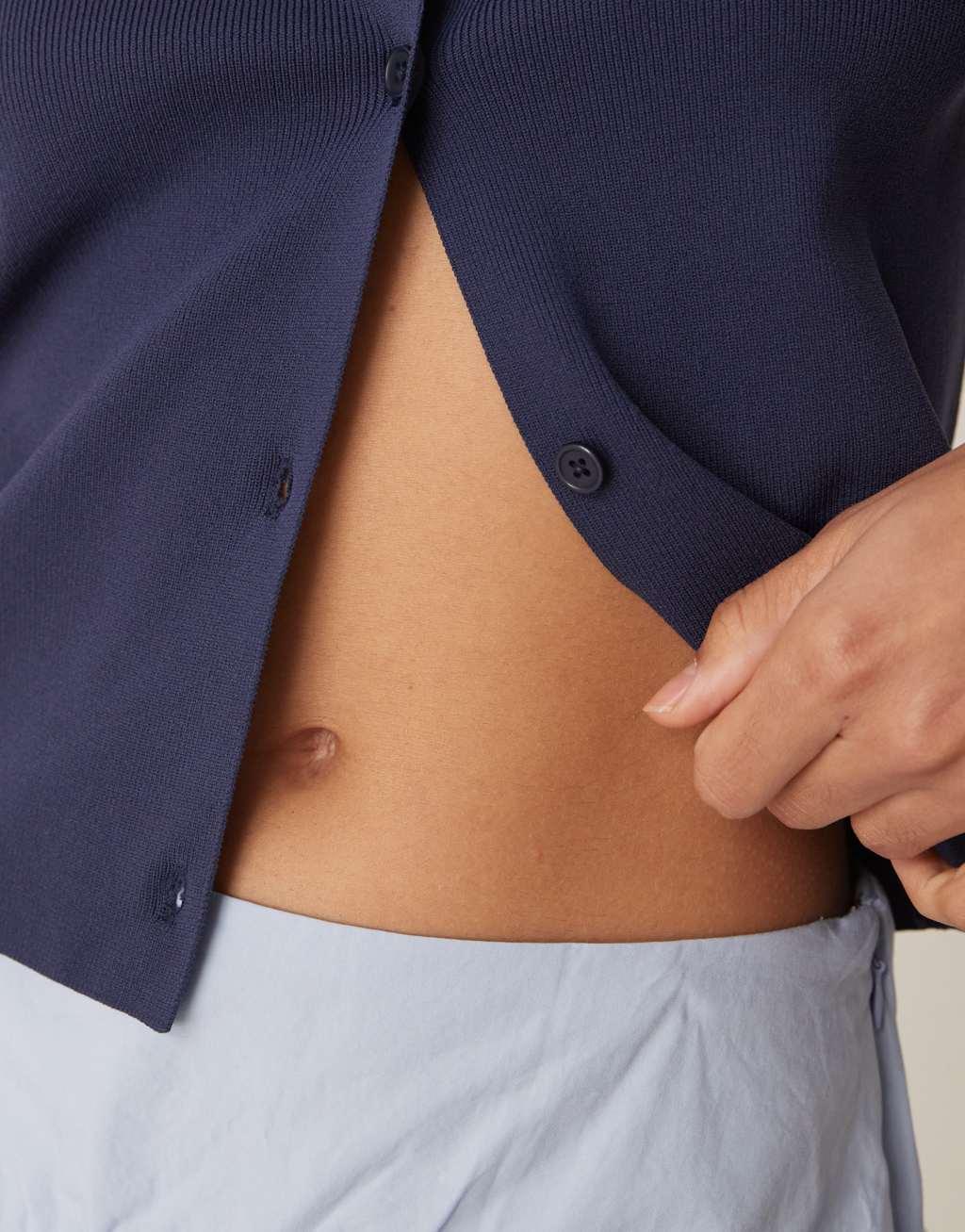 ASOS DESIGN knit clean compact button up crew neck cardigan in navy