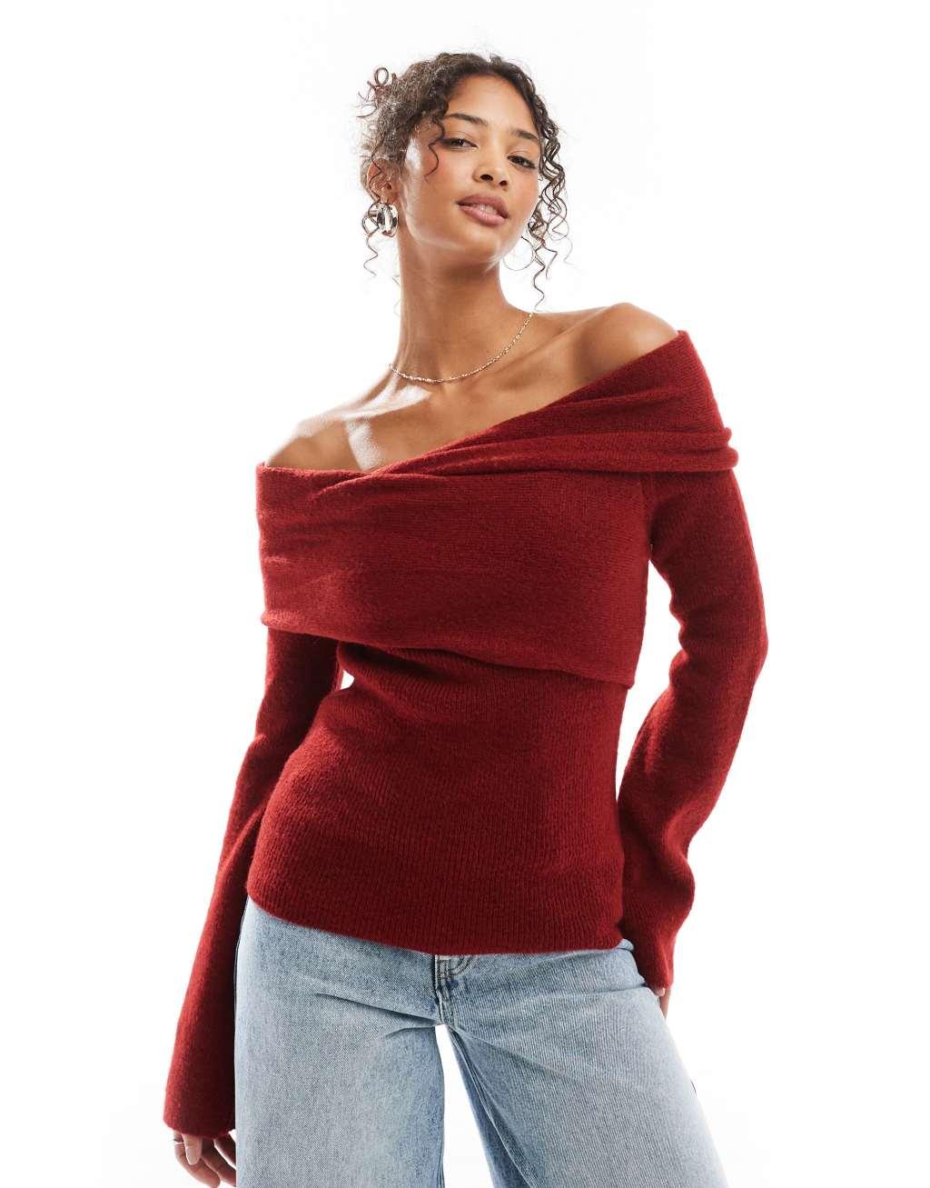 Cardigan by ASOS DESIGN Embrace your softer side Off-shoulder style Long sleeves Wrap detail Slim fit