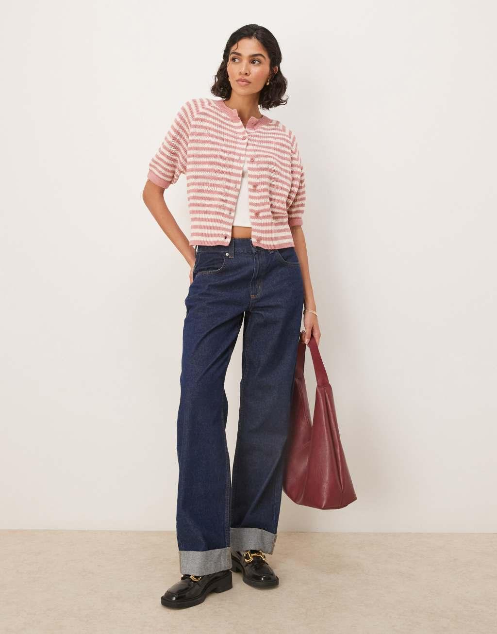 ASOS DESIGN knitted cardigan with raglan sleeve in dusty pink