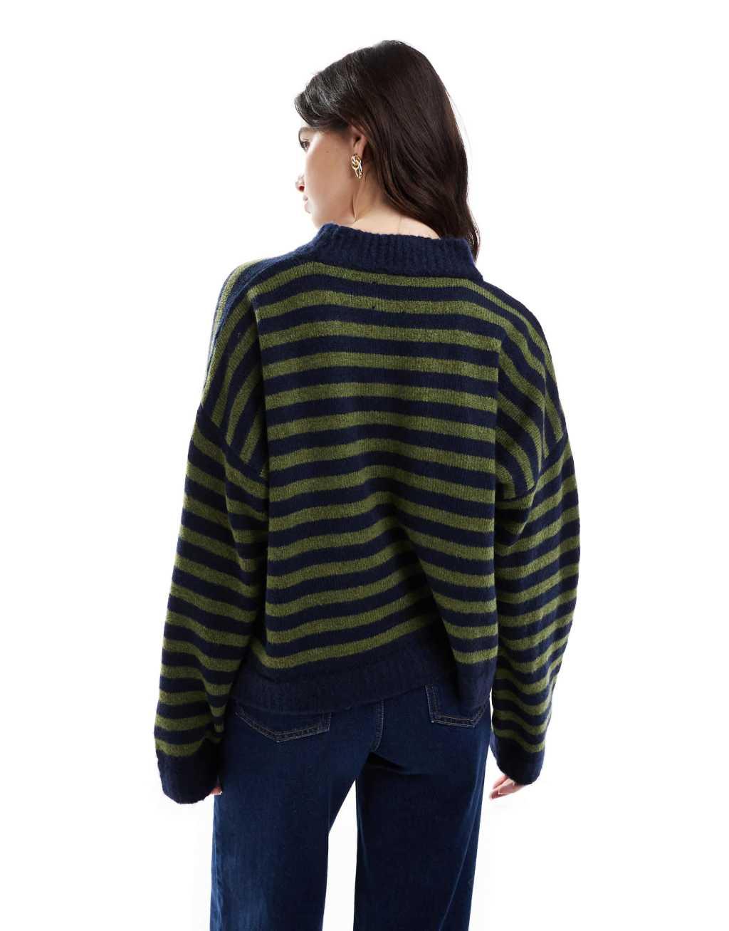 ASOS DESIGN knitted v neck cardigan in navy and green stripe