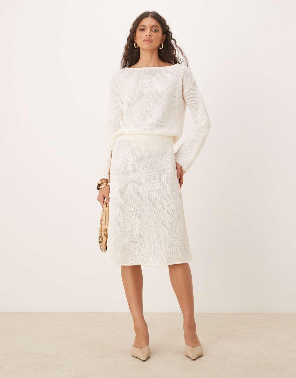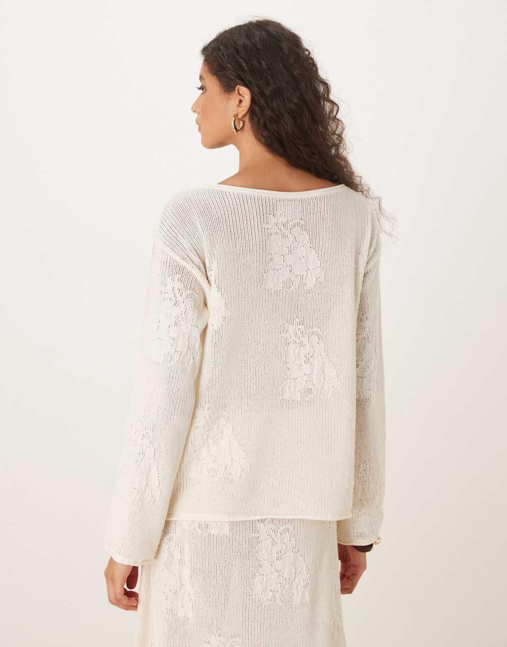 ASOS DESIGN lace knit slouchy sweater in ecru
