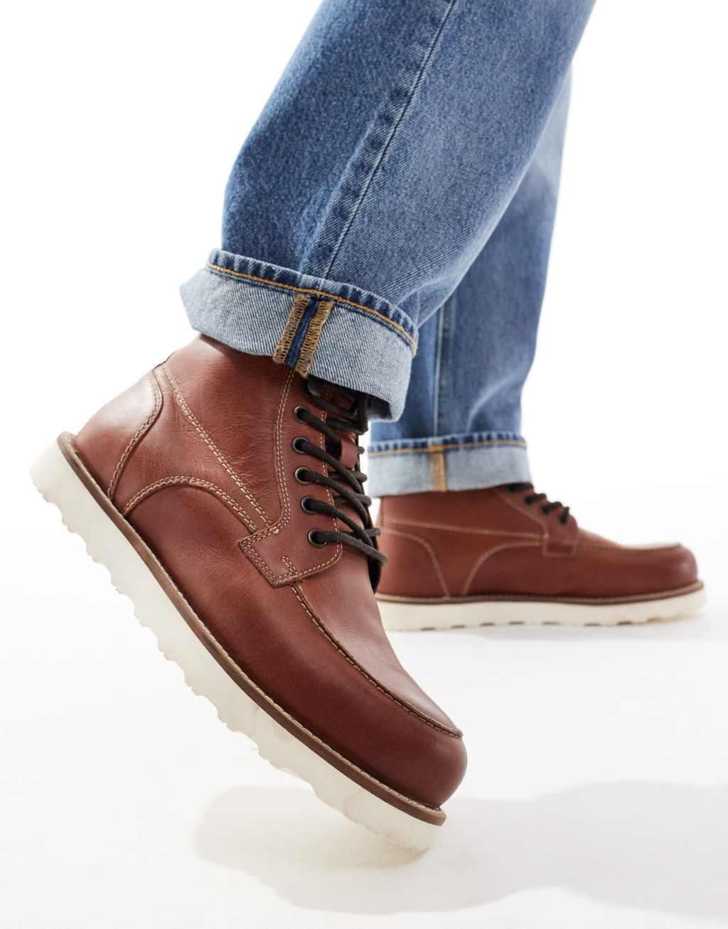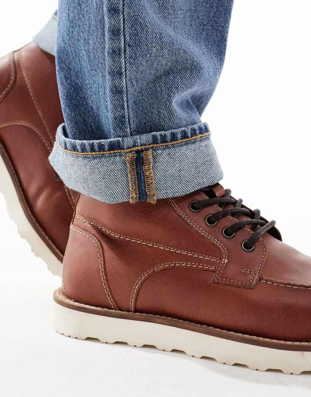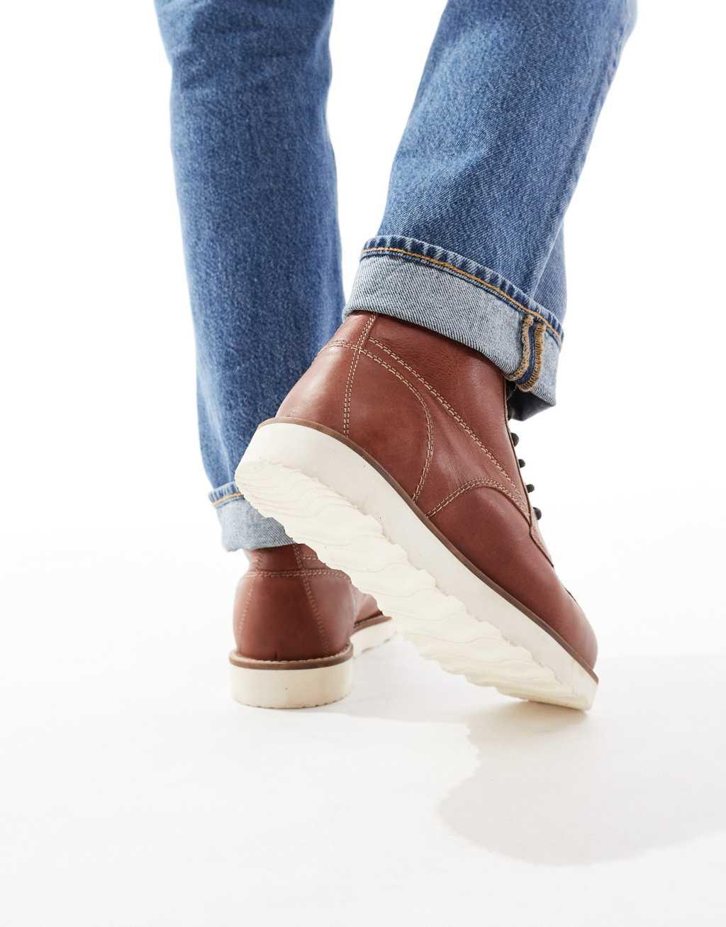 ASOS DESIGN lace up boots in brown leather with contrast sole